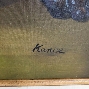 Still Life On Canvas Showing Vase With Fruits And Signed By Kance