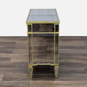 This Baroque style dresser features mirrored panels with antique gold trim and hardware.
