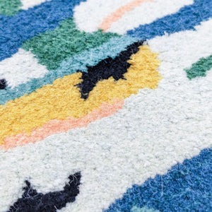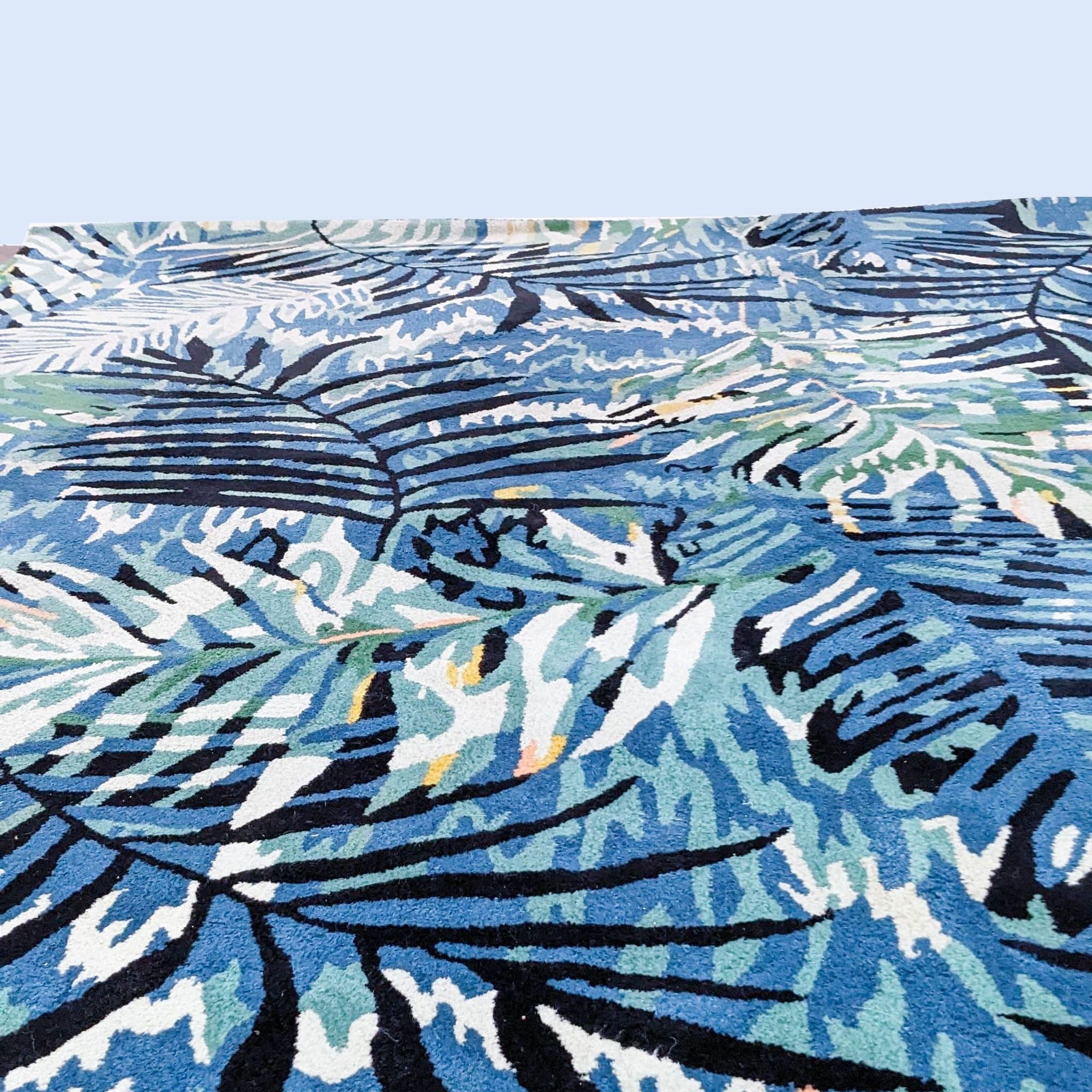 The Midnight Jungle area rug by CB2 has a high pile and woven from wool and rayon.