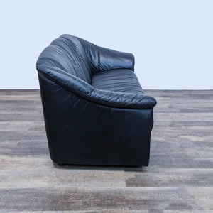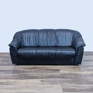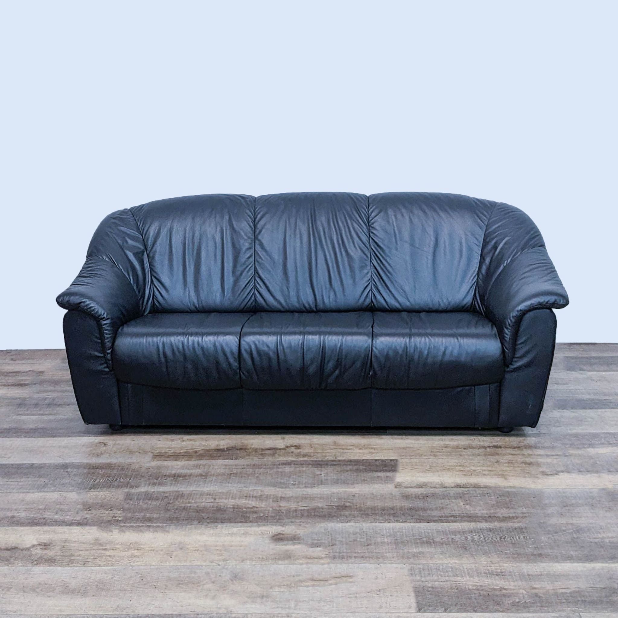 Black Leather Look Sofa With High-Back And Pillow Top Arms
