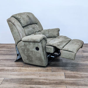 This rocker recliner by La-Z-Boy has padded armrests and a chaise seat and footrest that cradle the body with full support. It also rocks and reclines for total comfort as well as a chair back that can recline independently, without activating the legrest.