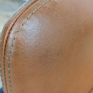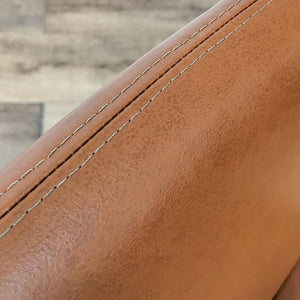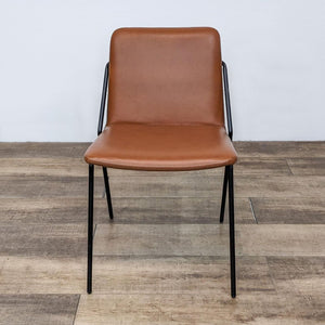 This modern style dining chair’s sling features a rear leg that follows the angle of the back, becoming both a structural support and design feature at the same time and is covered in vegan leather.