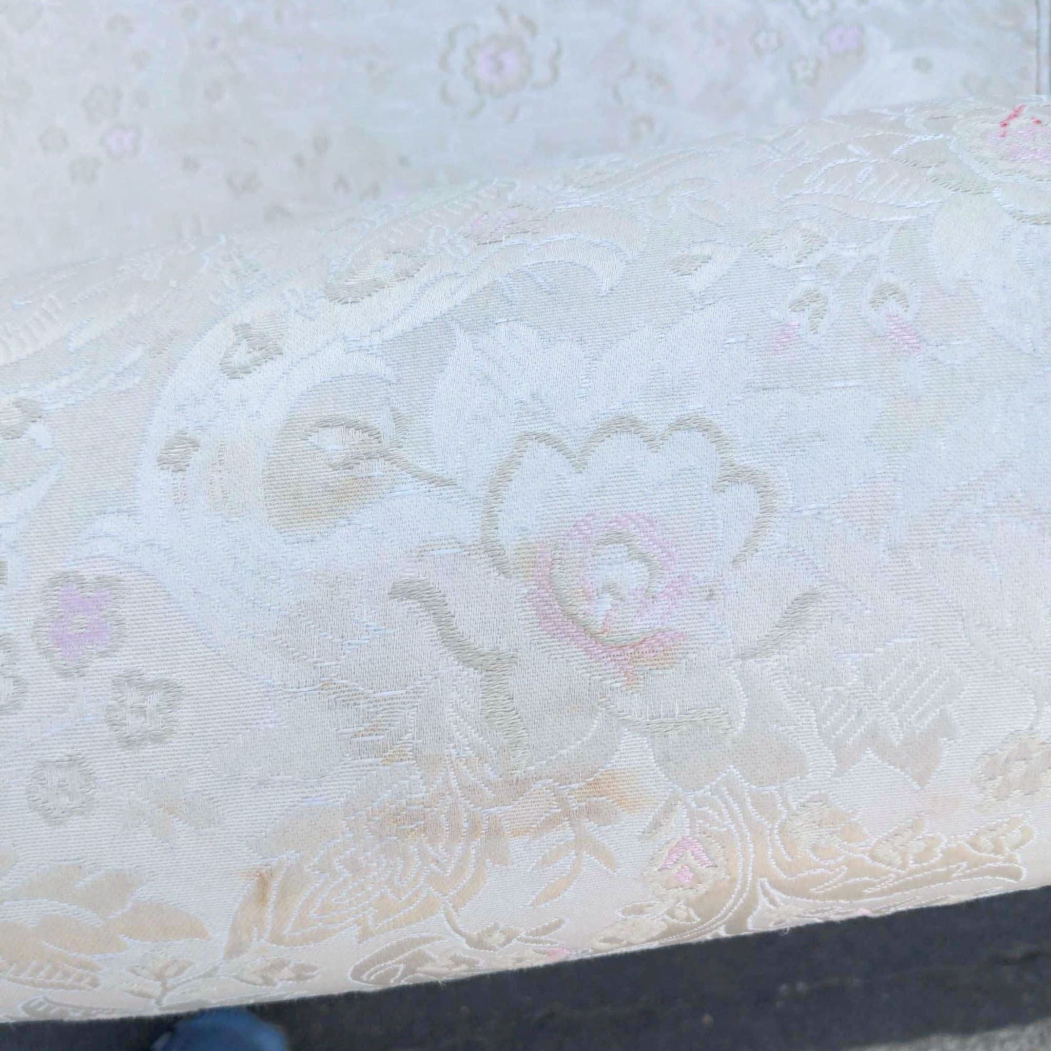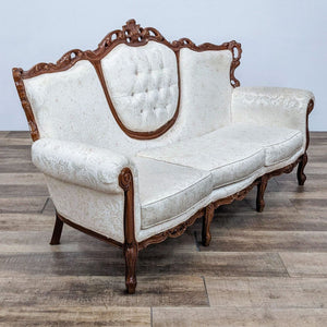 Damask Fabric Victorian Inspired Sofa With Wood Frame Accents And Detailing
