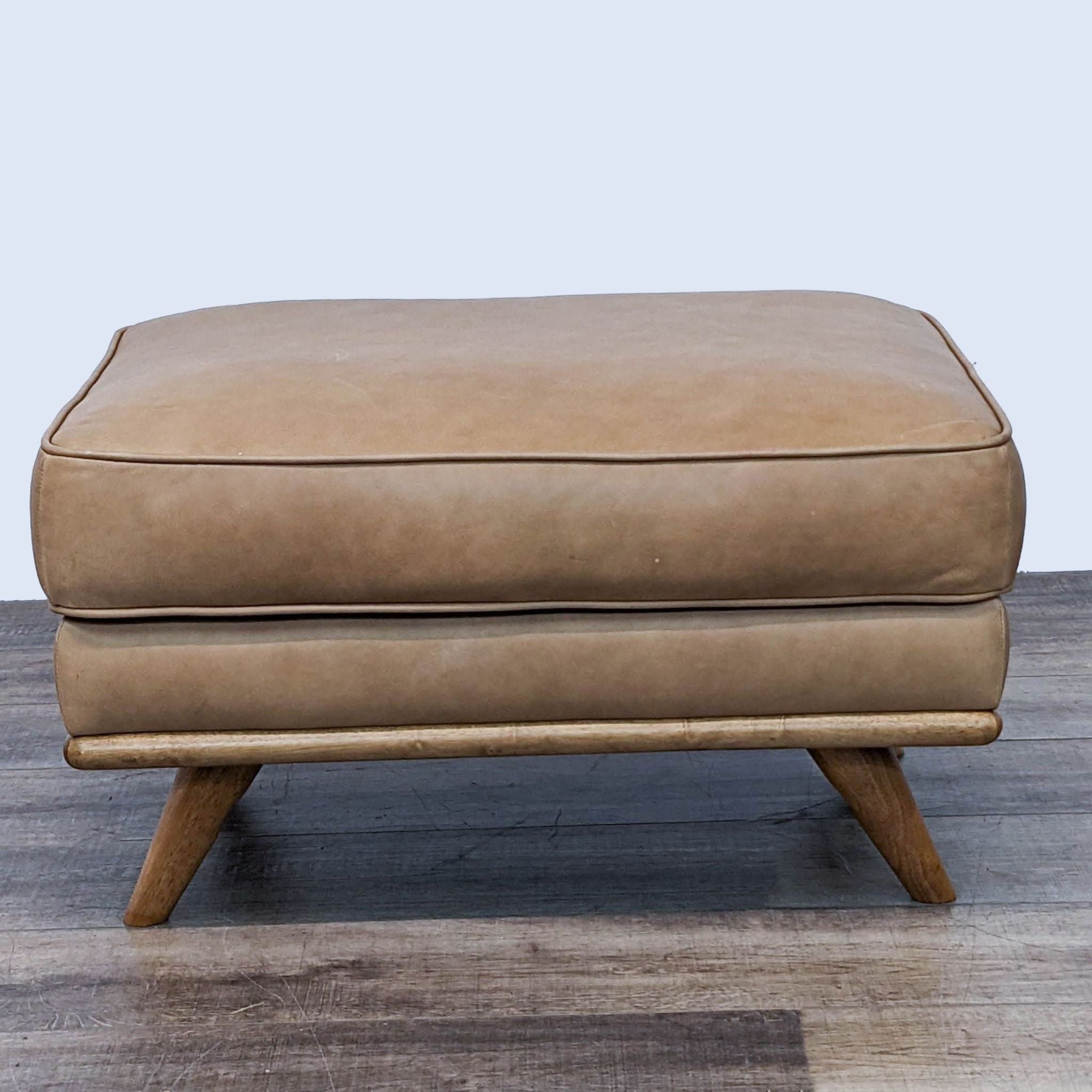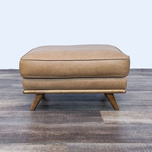 Mid-Century Modern Leather Ottoman With Foam And Feather Fill Cushion On Solid Wood Slant Legs
