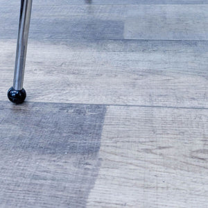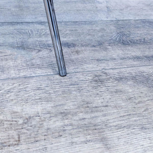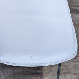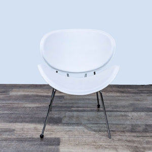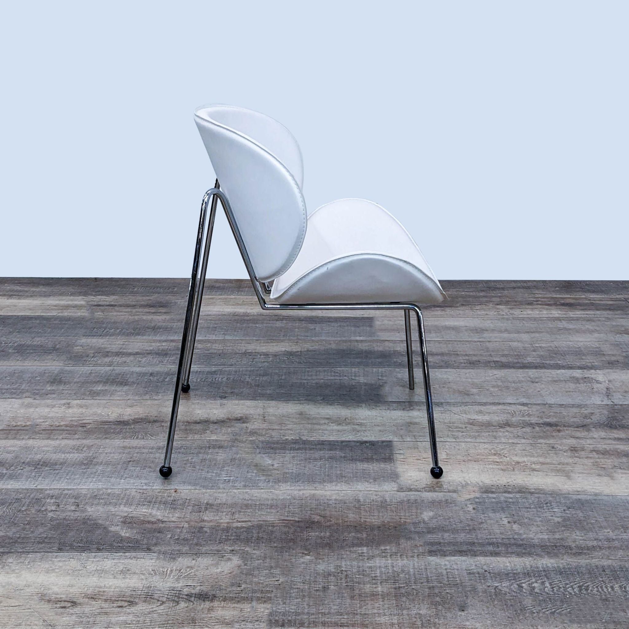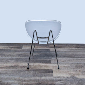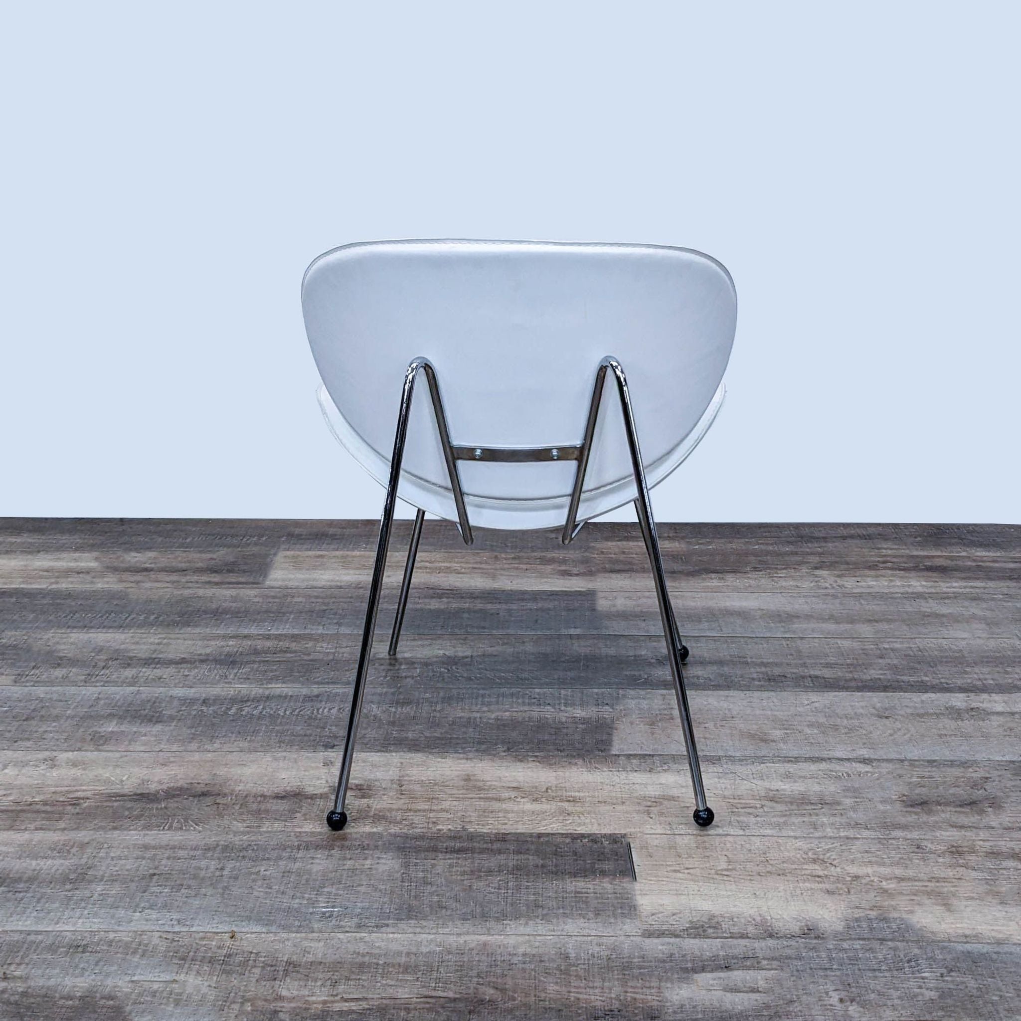 The Luther chair by Strick & Bolton features two elegantly shaped scoops made of a durable hard leatherette that form a symmetrical seat and back with a chromed solid steel frame with rubber feet.