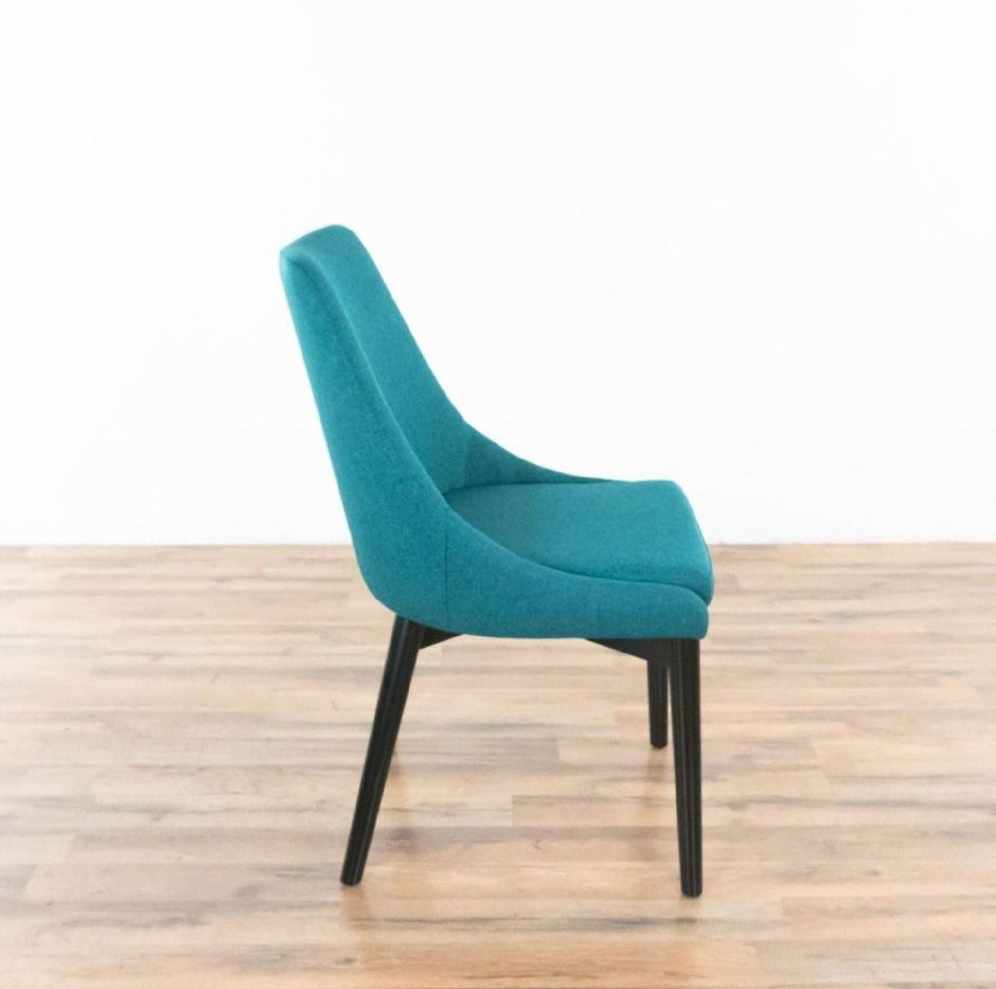 The contemporary modern Viscount side chair by StealMod comes densely padded in foam, finely upholstered in polyester fabric, and supported by tapered wood legs coated black.