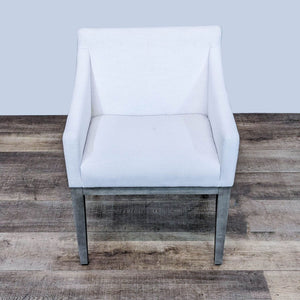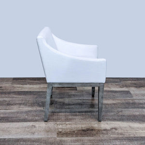 The Morgan dining chair by Restorative Hardware features tapered legs – a signature of midcentury design and complements the chair's strikingly angular silhouette. A wooden frame supports the impeccably upholstered seat and back, providing visual contrast and warmth. Plush foam cushions provide the perfect combination of comfort and enduring support.