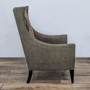 The Pluto chair by Andrew Martin is a stately high-backed chair with a thick padded seat and back designed for comfort. Slightly winged arms provide a softening touch to the armchair's strong profile.
