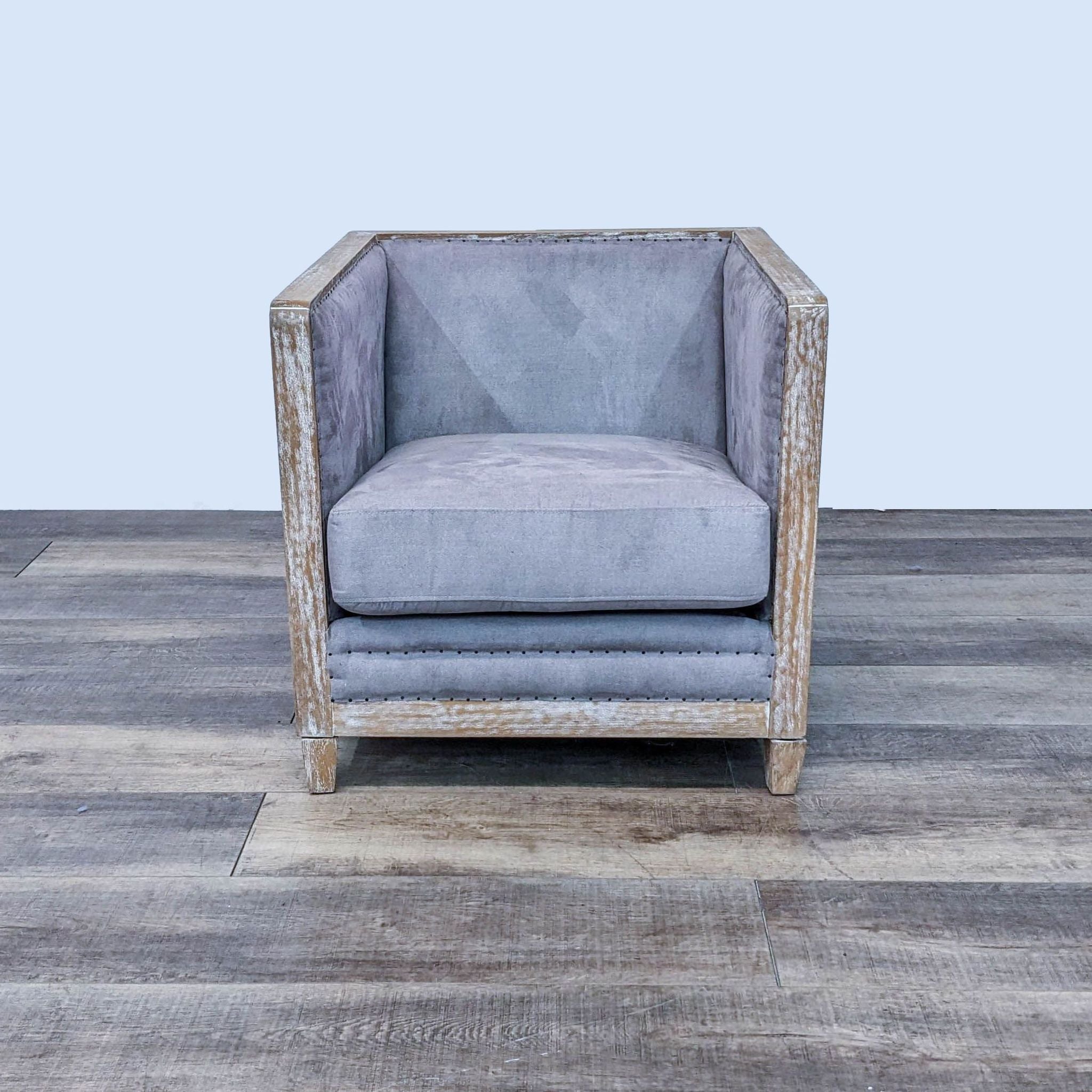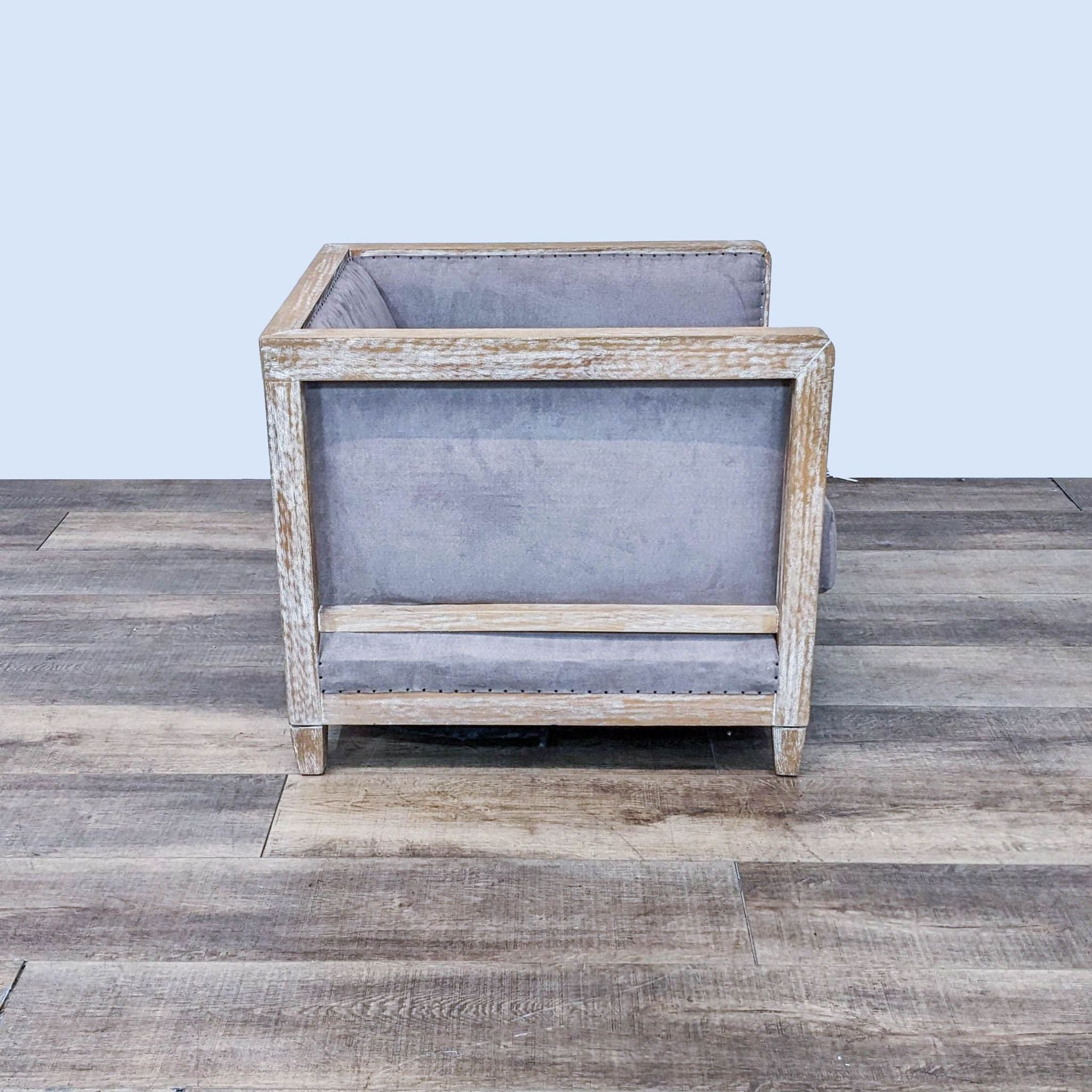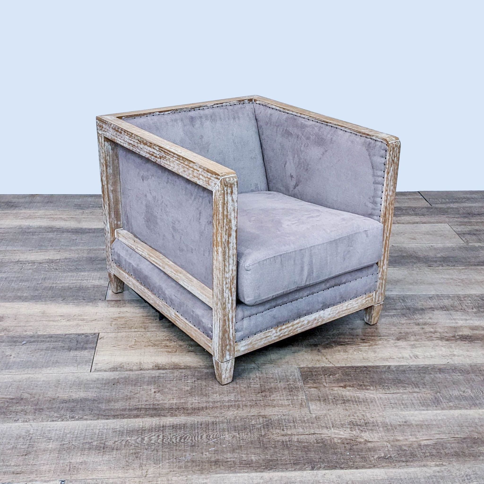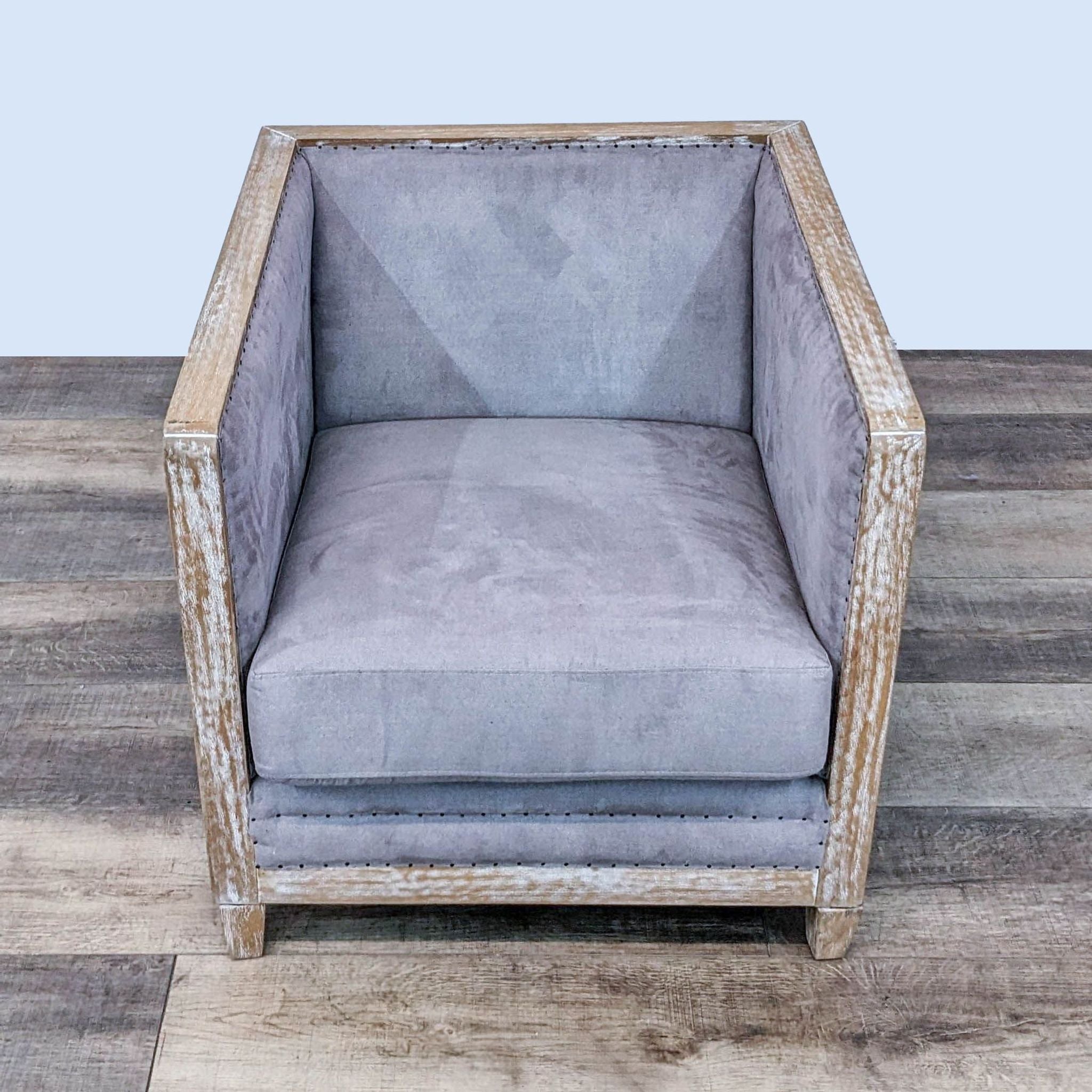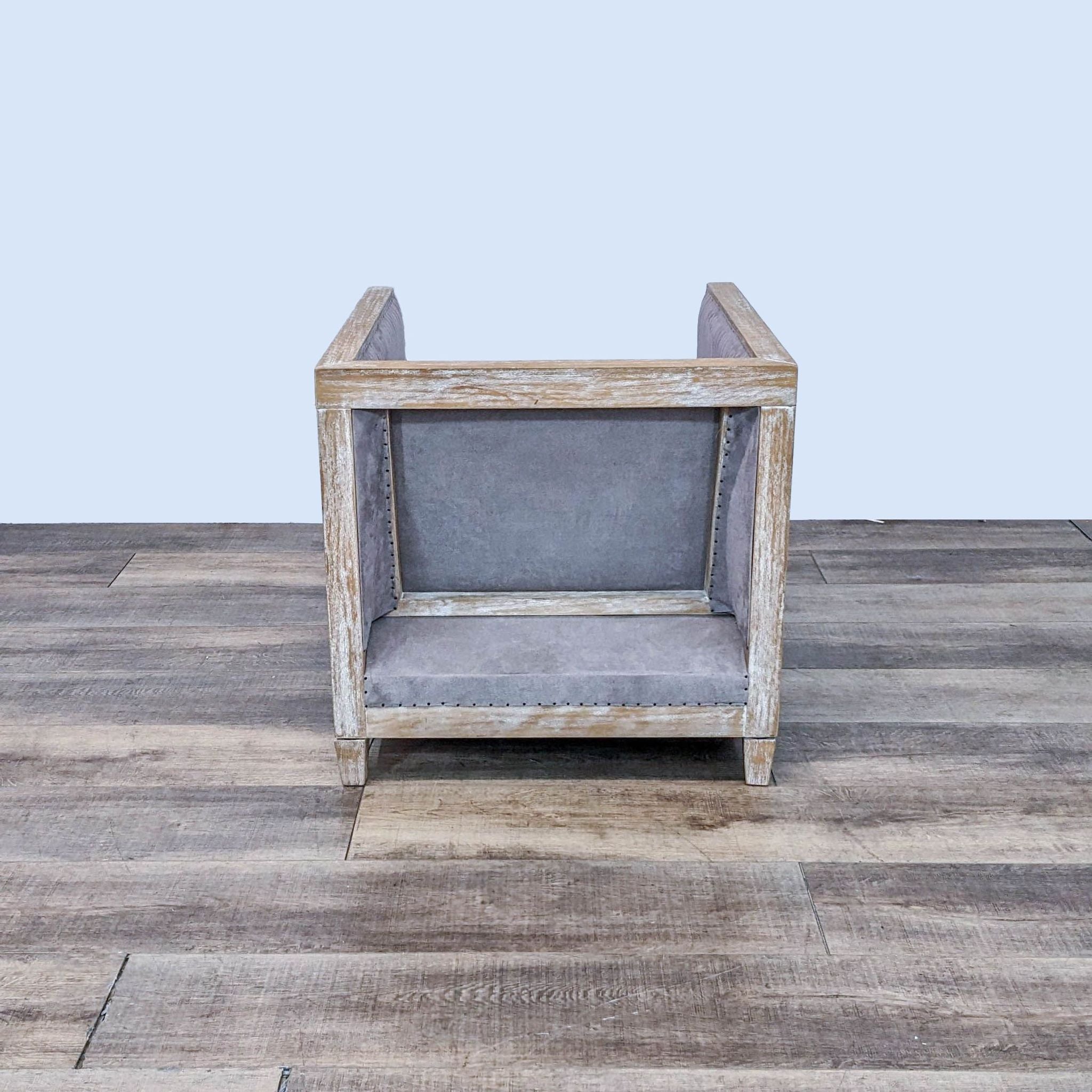 The Hartland chair by New Pacific Direct features a rustic wood frame with a subtle white wash finish and microfiber upholstered foam seating.