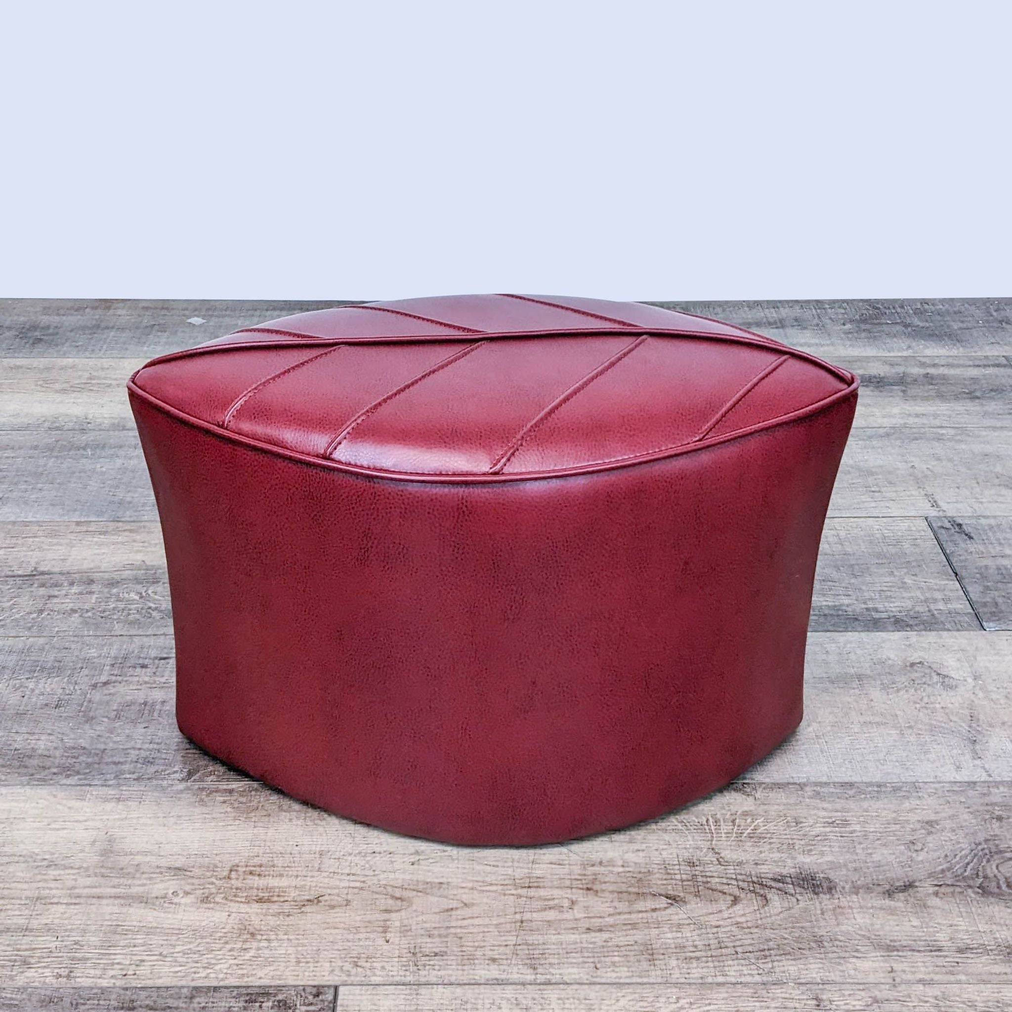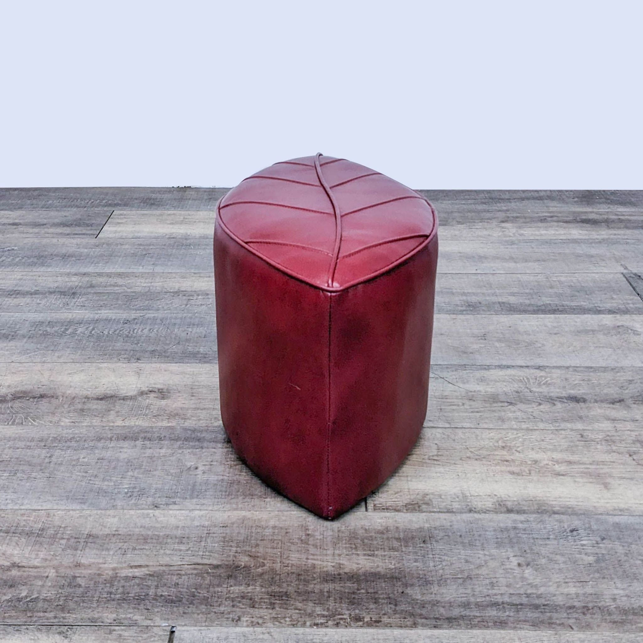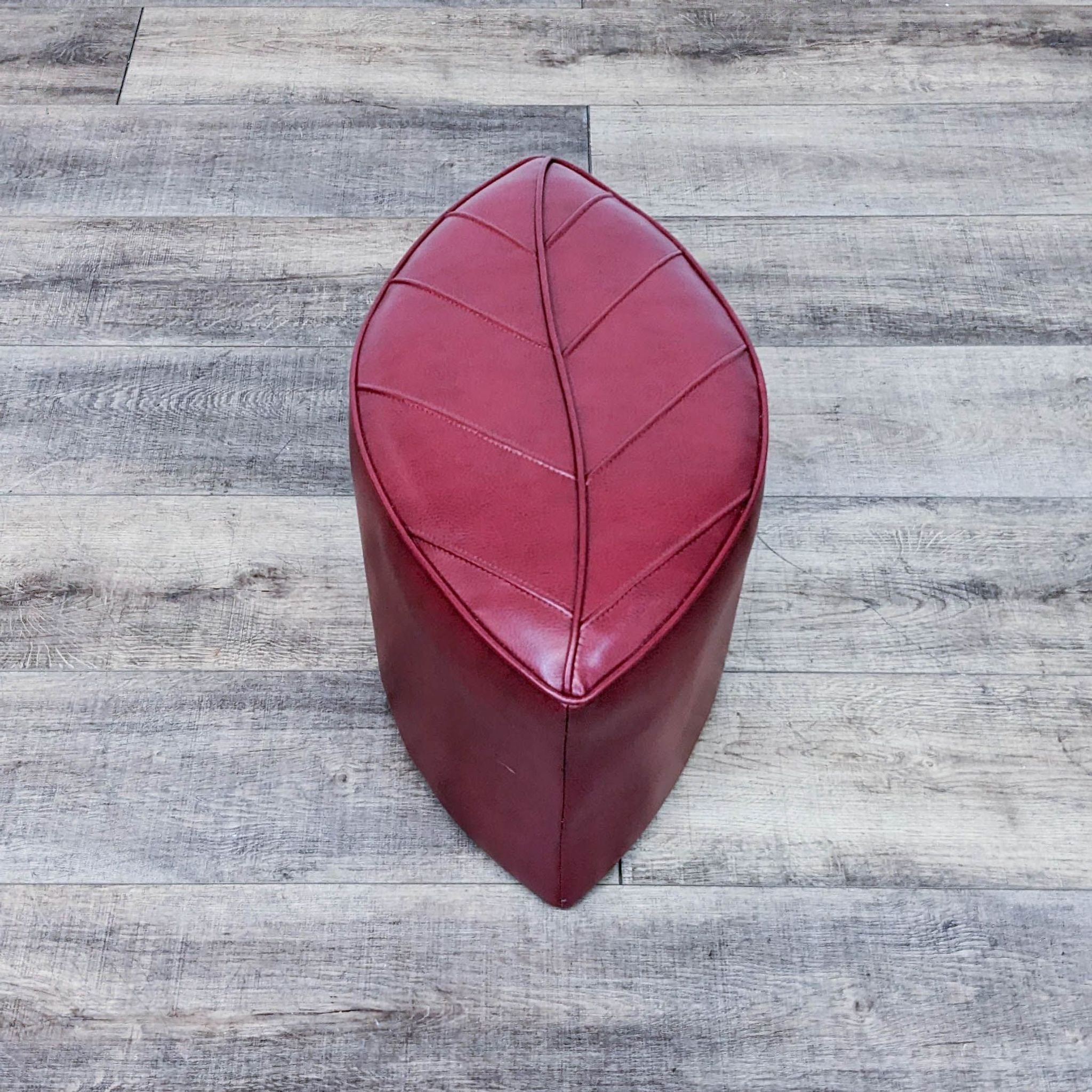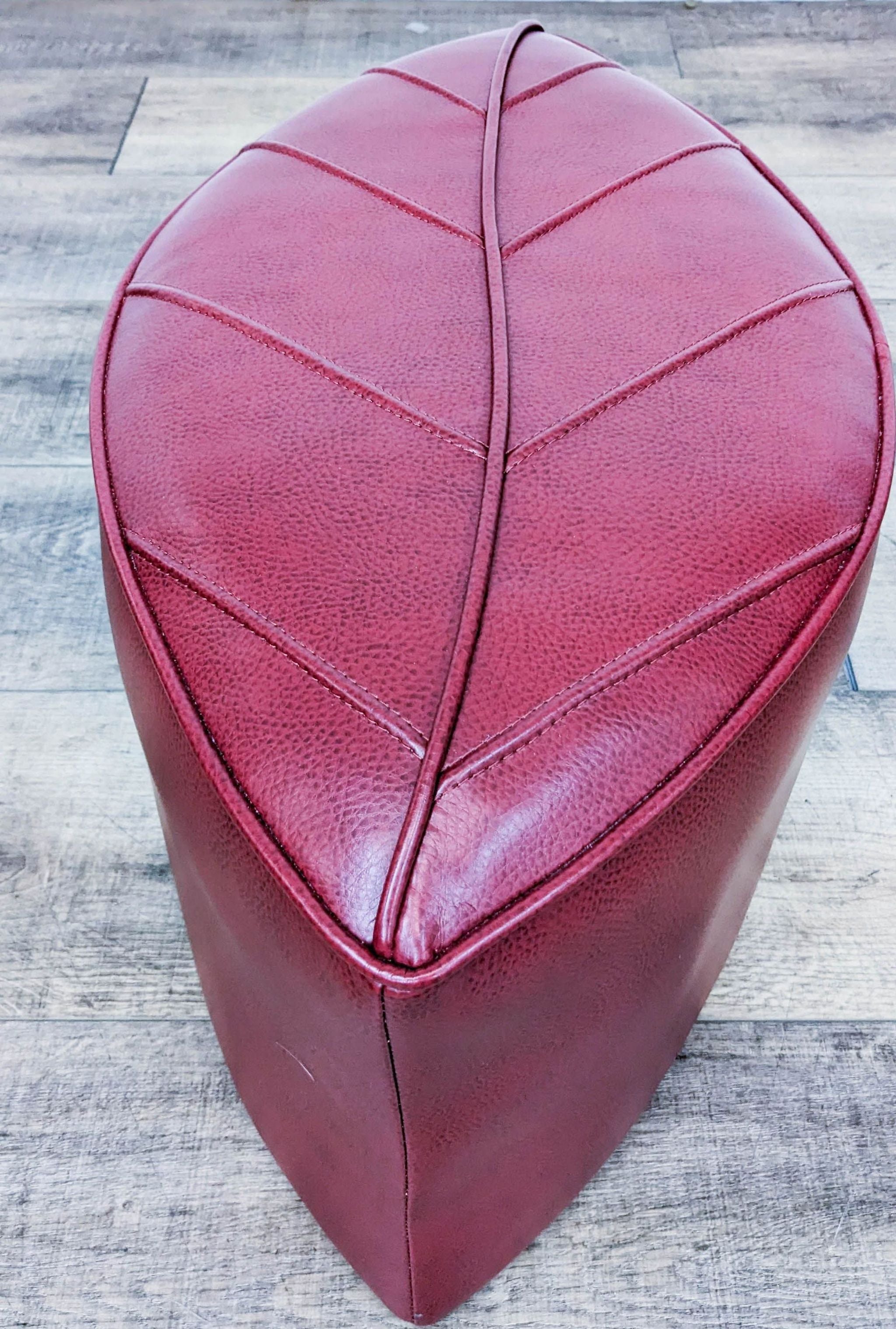 Contemporary Small Red Leather Look Leaf Shape Ottoman