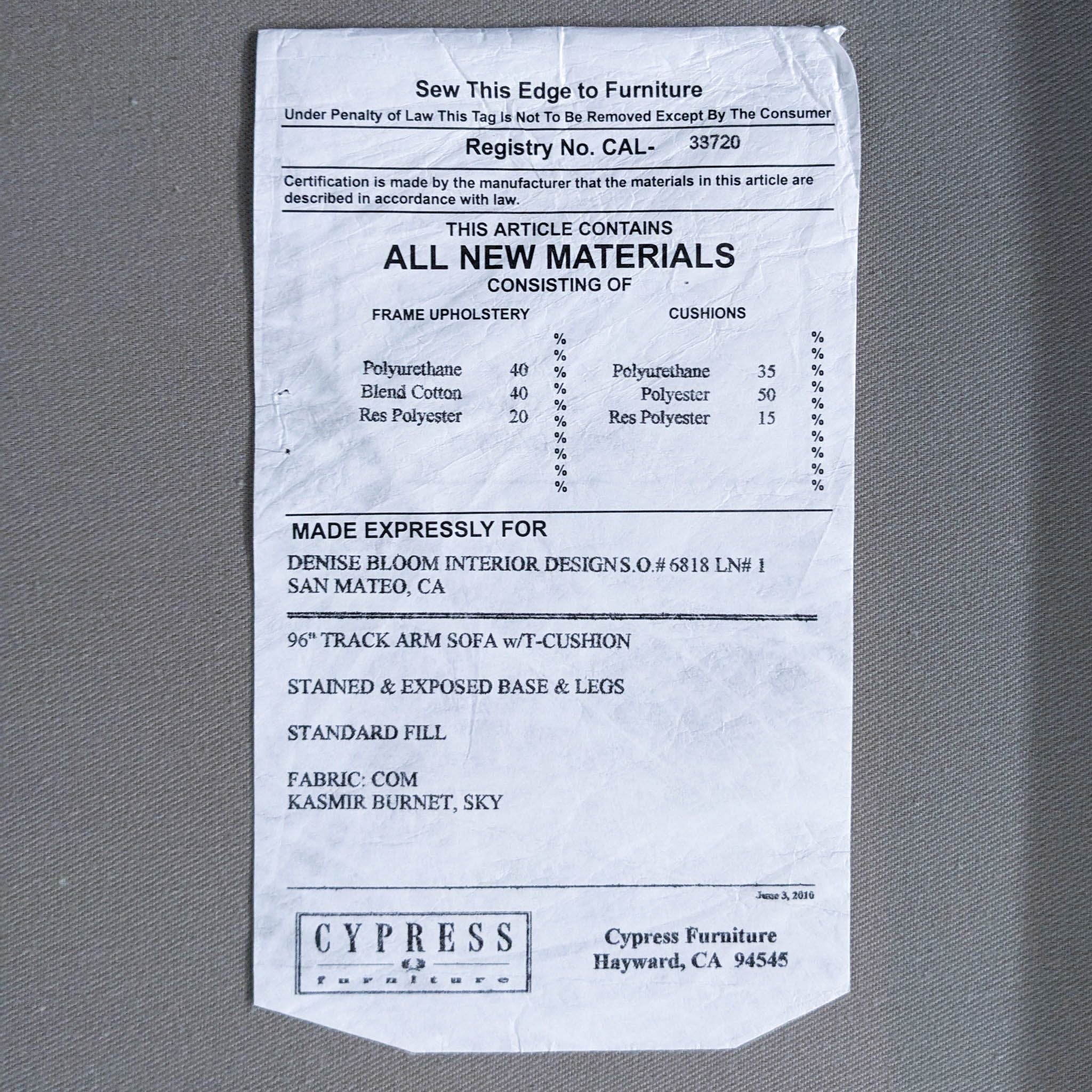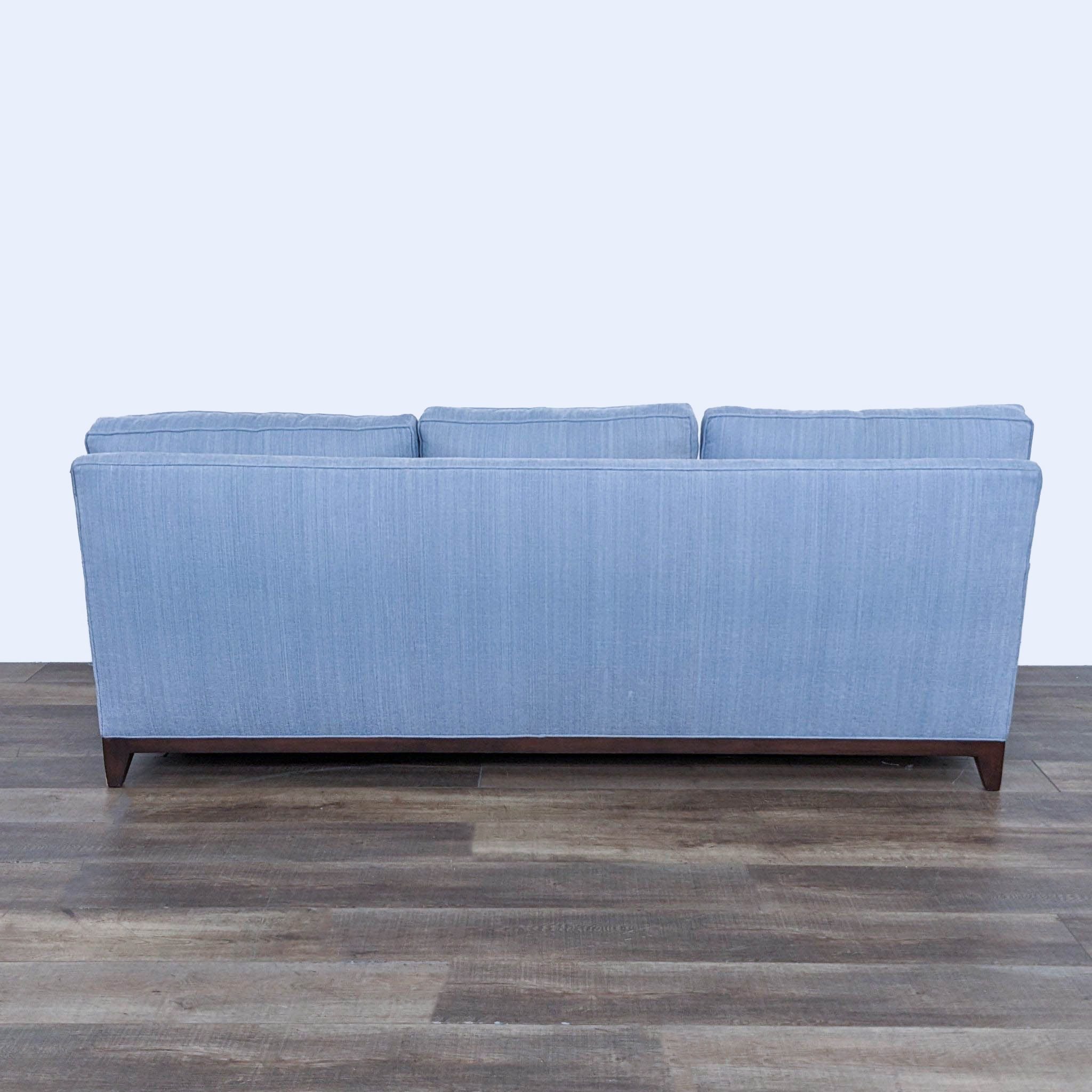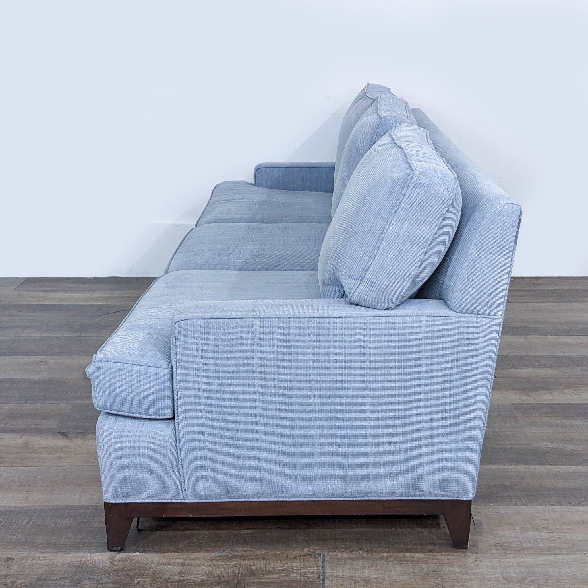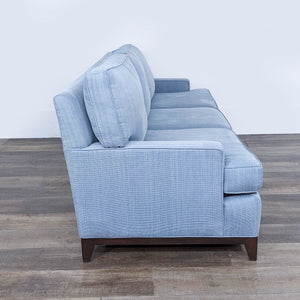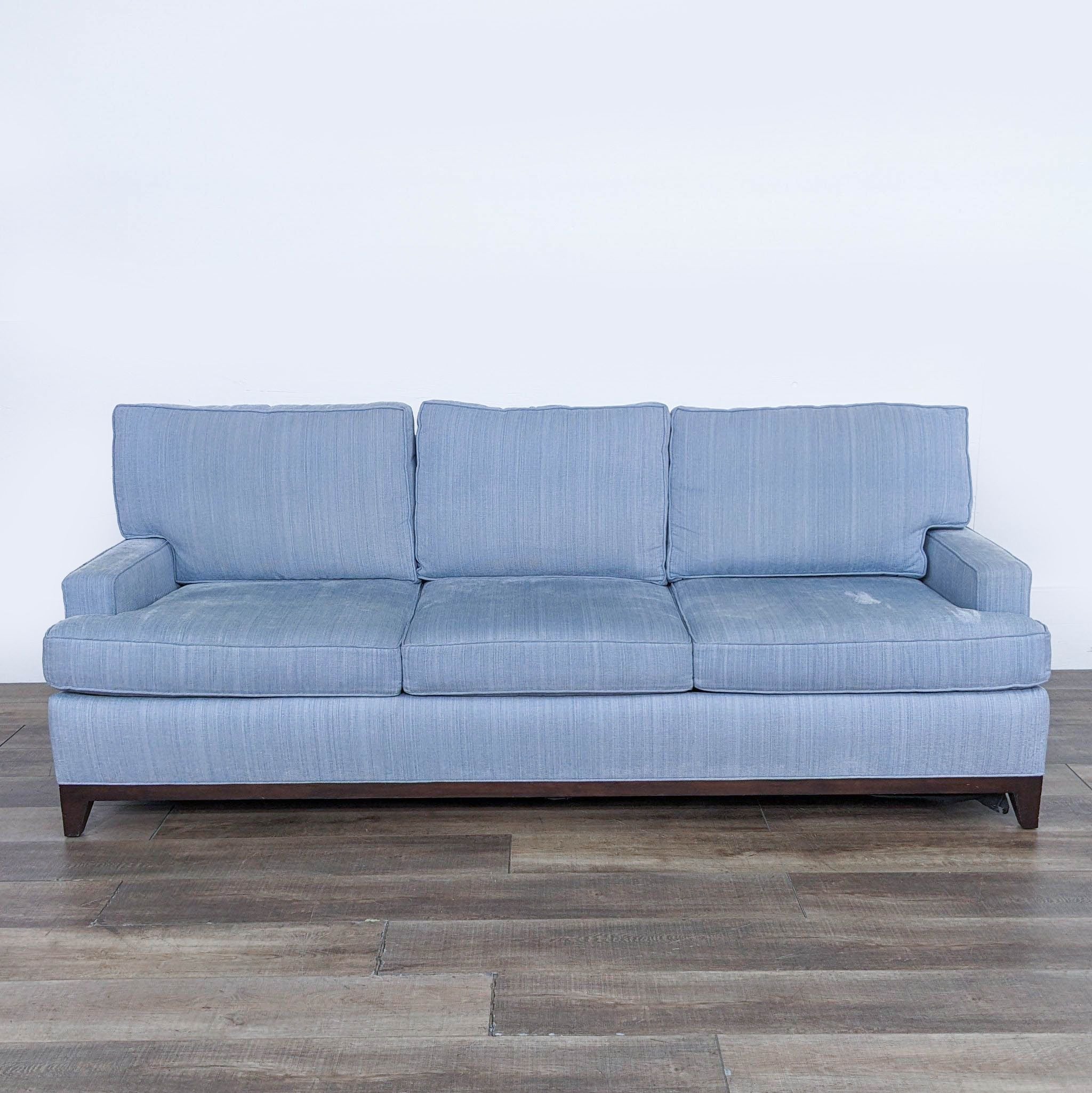 Cypress Furniture Contemporary 3-Seat Sofa with light blue upholstery and wood feet.