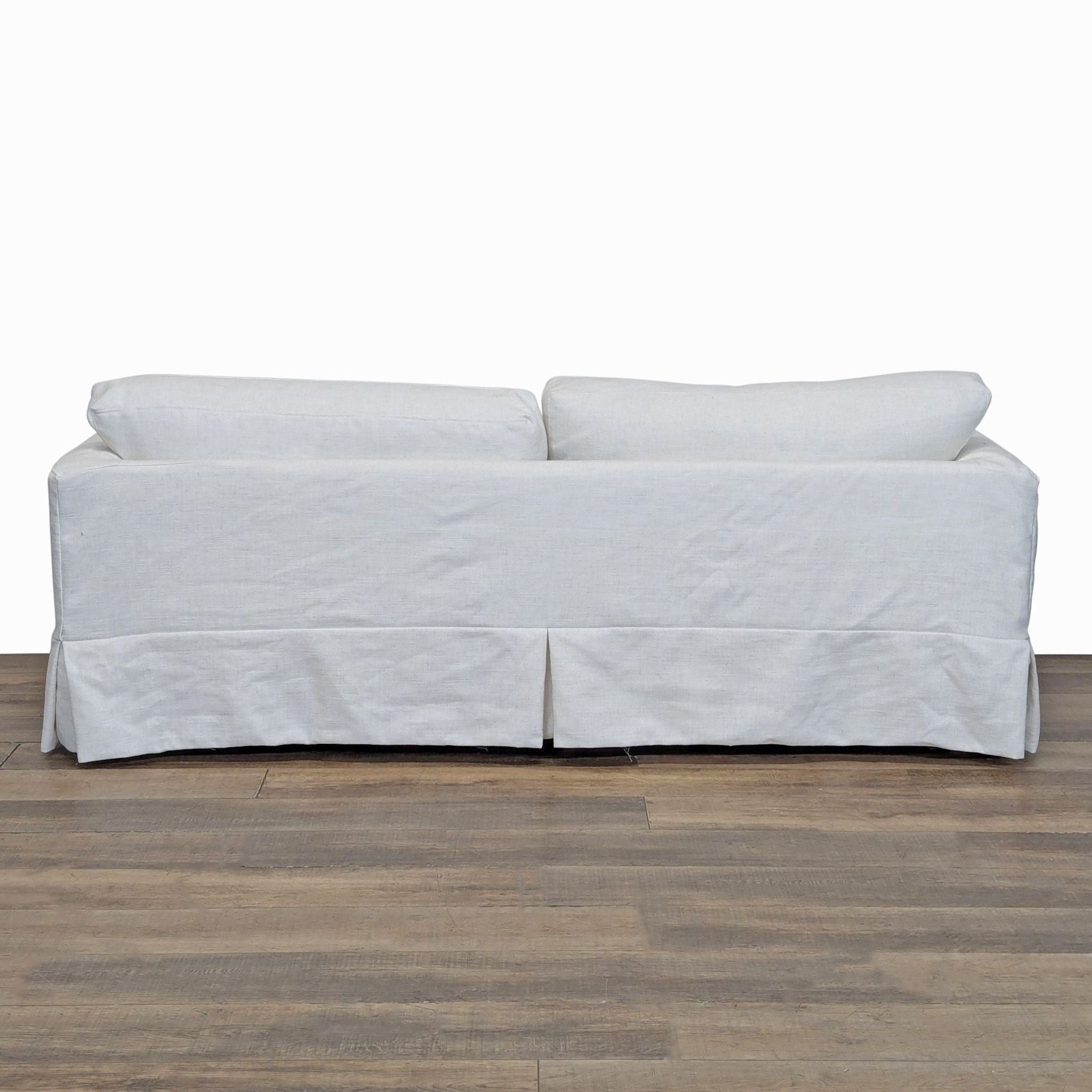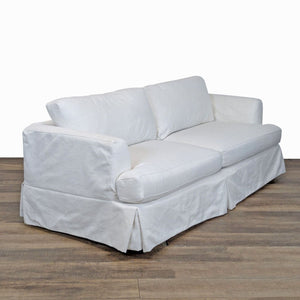 Wood frame with tailored dressmaker styled skirt, down filled cushions with slipcover.