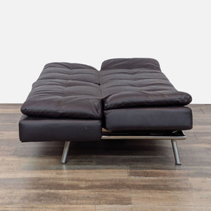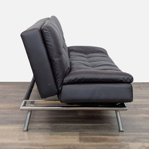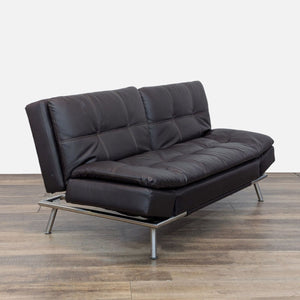 Features- 3 seat functions - Sofa, lounger and bed- Splitback, pillow top and adjustable arm wings. Constructed with a Solid steel frame with black leather upholstery.