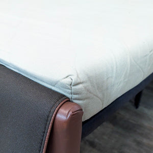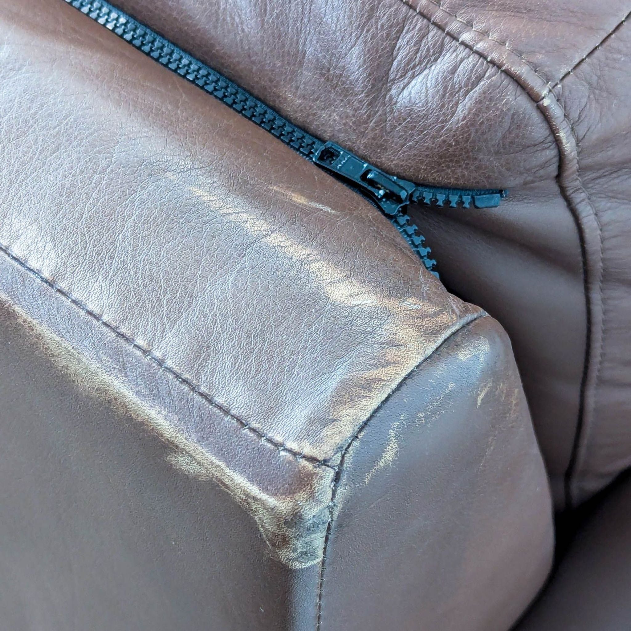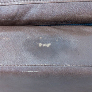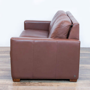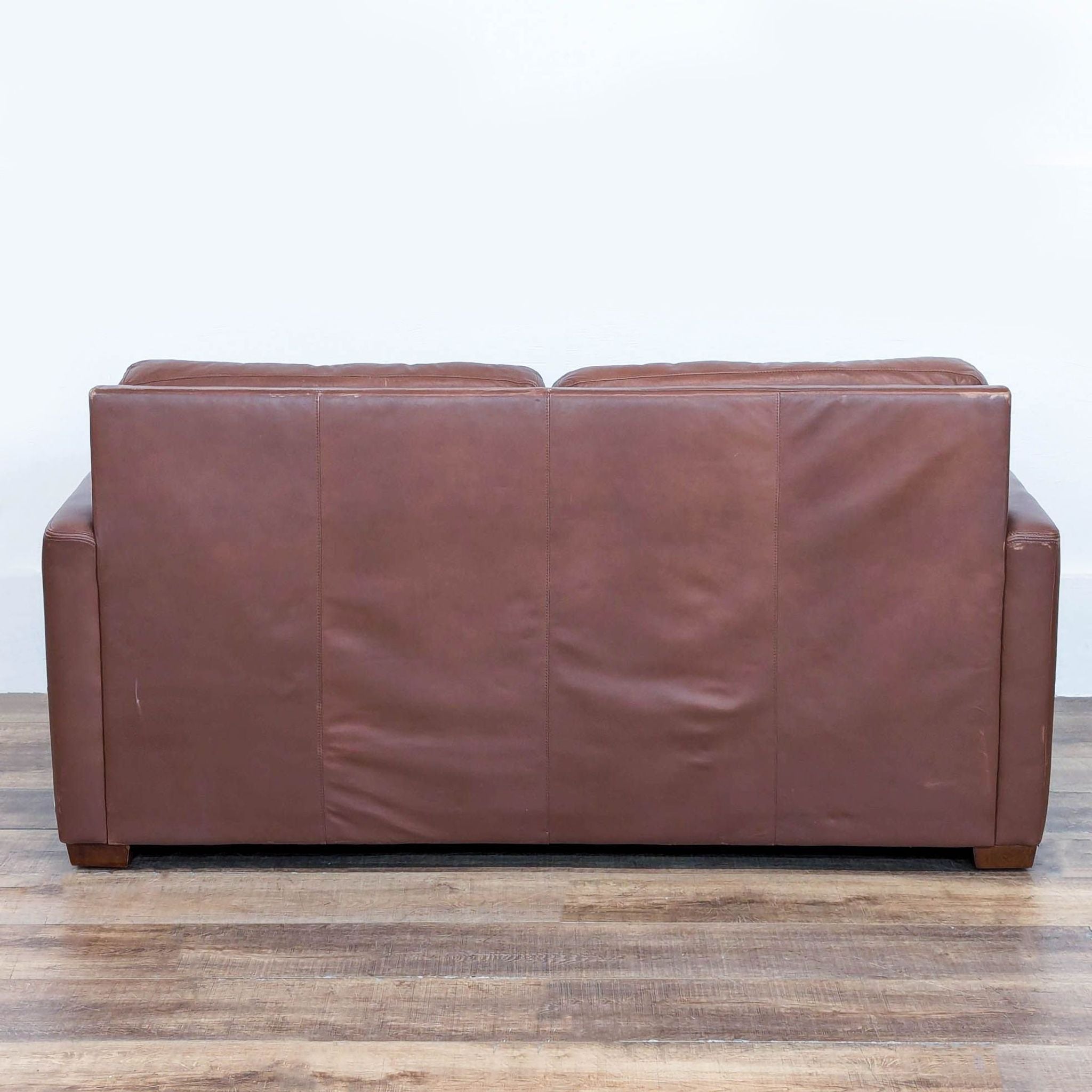 Leather sofa with track arms, wood block feet and pull out sleeper.