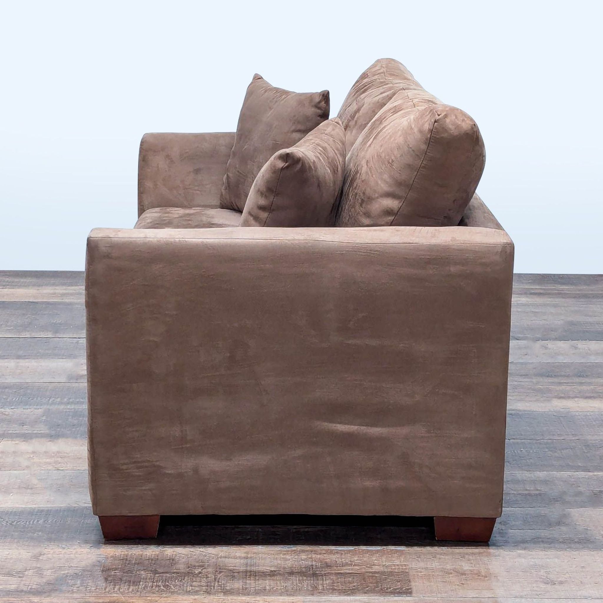 Features angled track arms, microfiber upholstery and removable cushions.