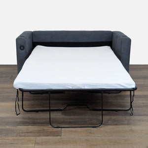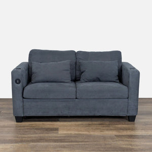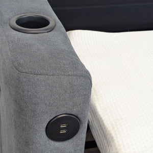 Features: Armrest cup holders and built-in USB ports keep drinks and devices within reach. Back cushions double as a headboard, with extra pillows and cushioned sides for a cozy reading nook. Removable, machine-washable covers for easy cleaning Includes a 3-inch mattress topper with memory foam for support and comfort, secured with elastic straps