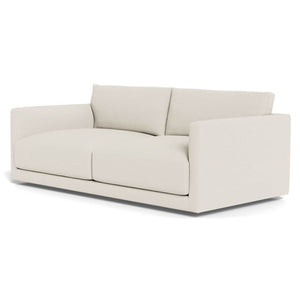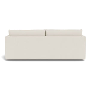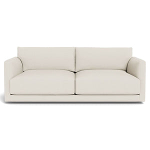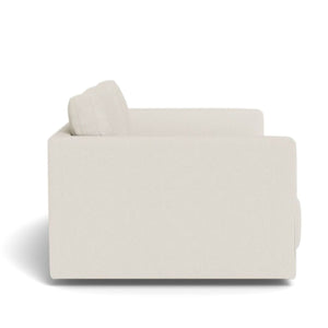 The Lukas features clean lines with a to the floor frame and linin upholstery.