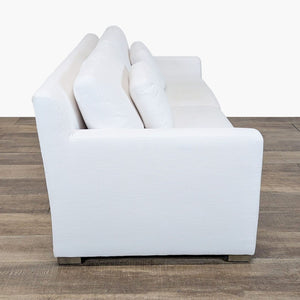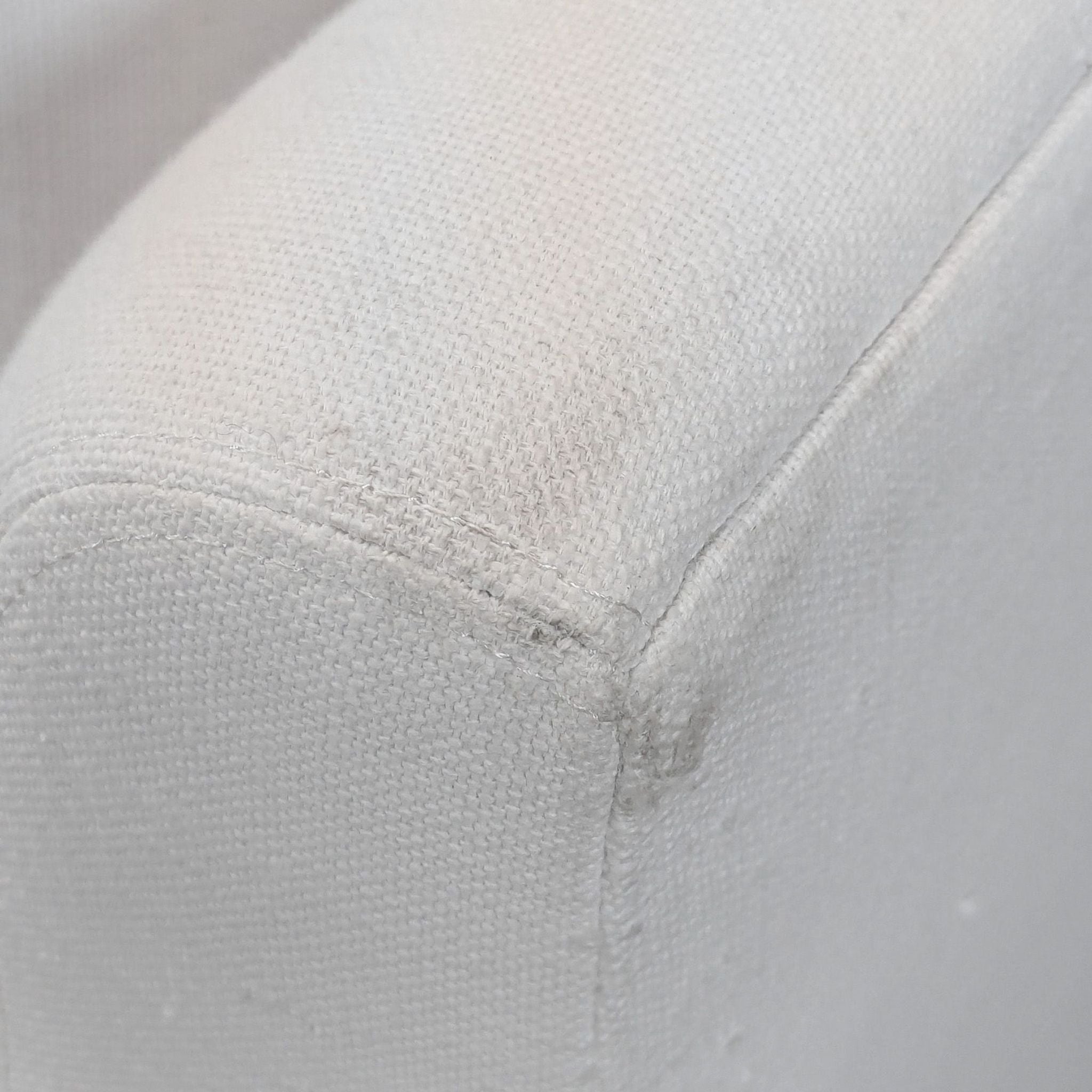 Features deep seat with hand tied springs, track arms and wood block feet.