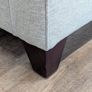 Features wood block feet, rolled arms and loose cushions.n