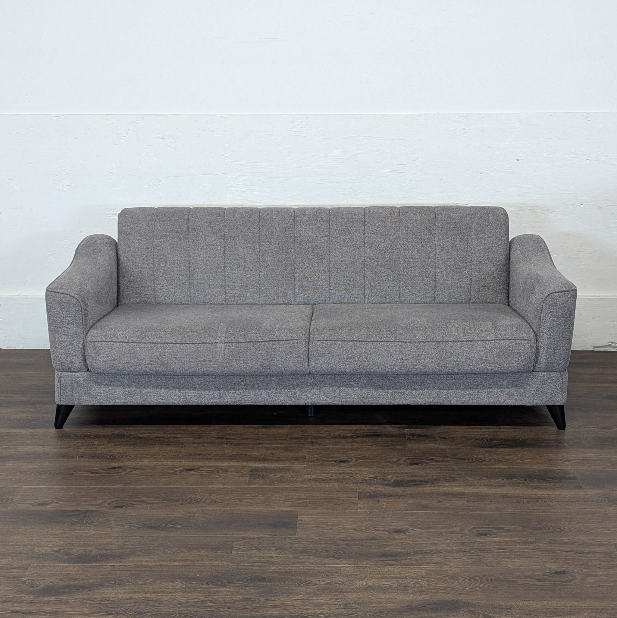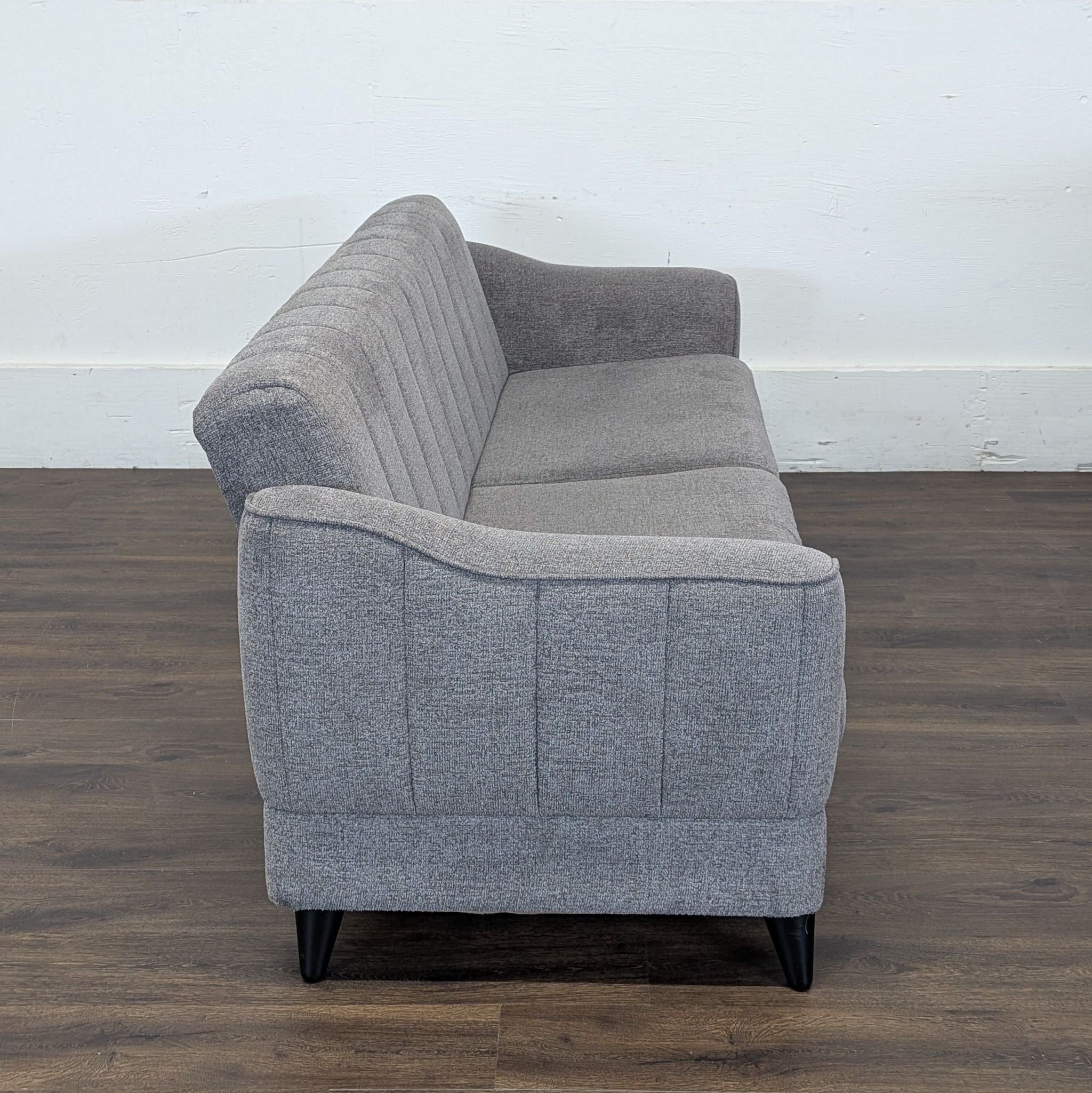Couch is electric and each side reclines with button on sides to almost flat. 7ft x 3 ft