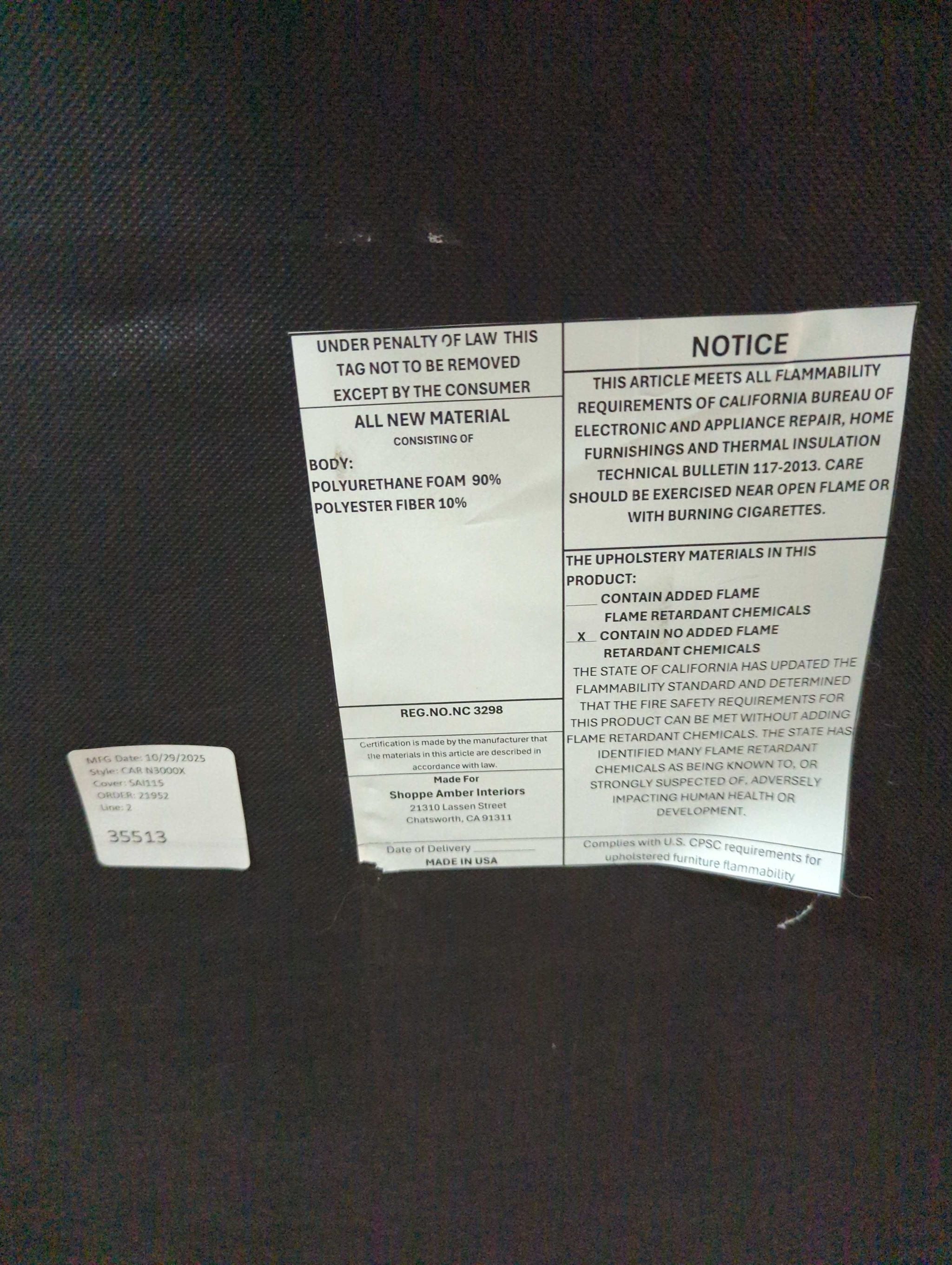 95.0ʺW x 36.0ʺD x 29.0ʺH |