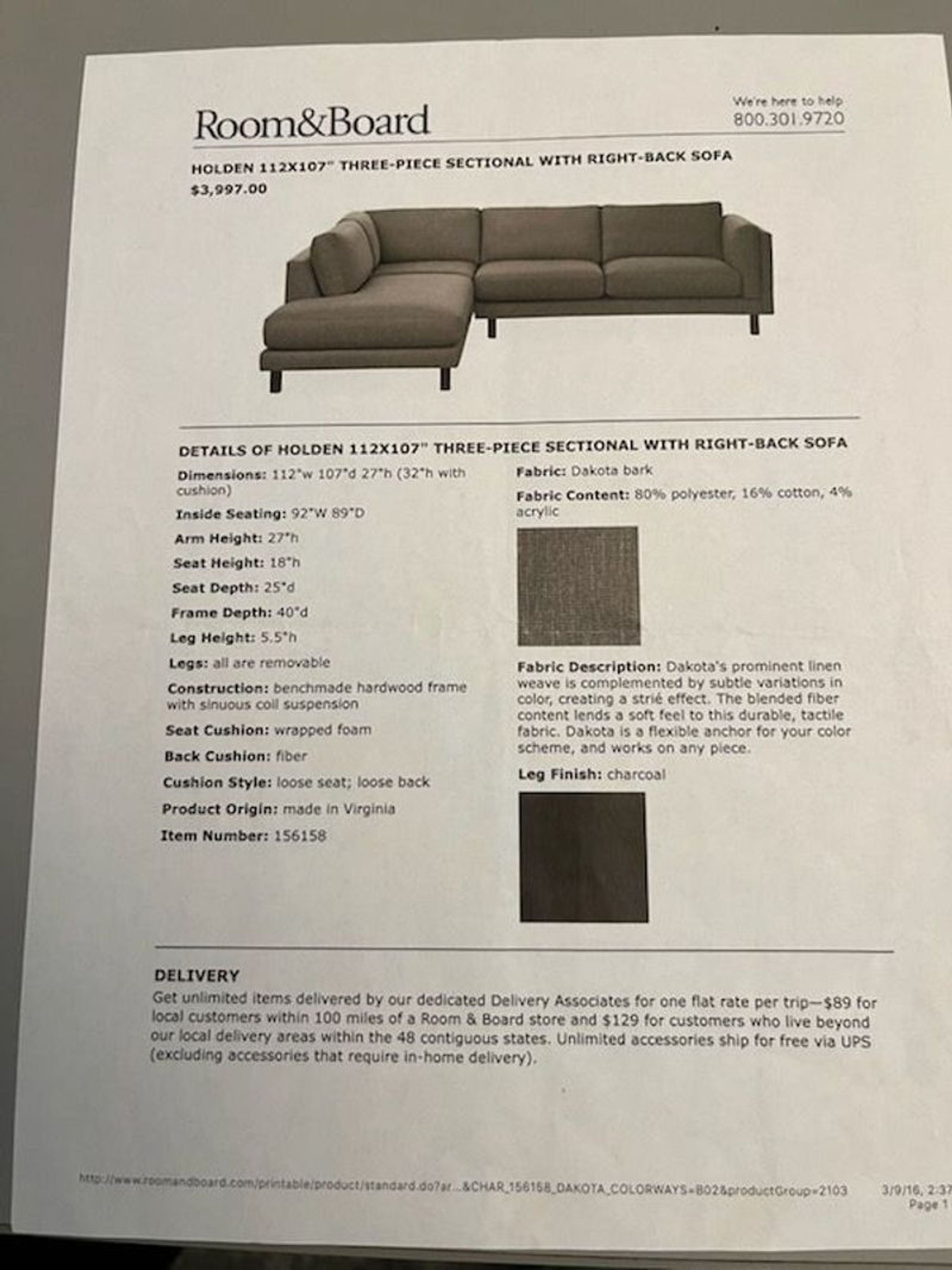L part 40.0ʺW x 107.0ʺD x 26.5ʺH