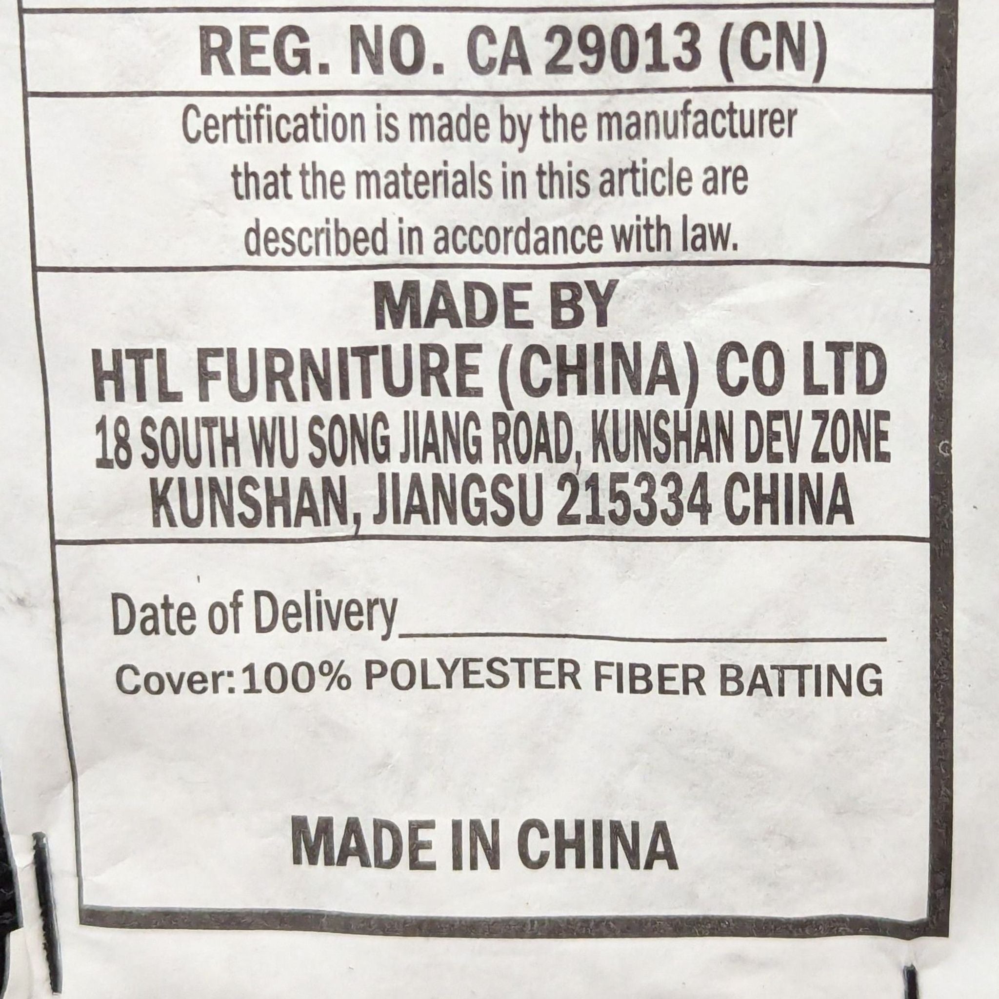 | Item Location | Bay Area |