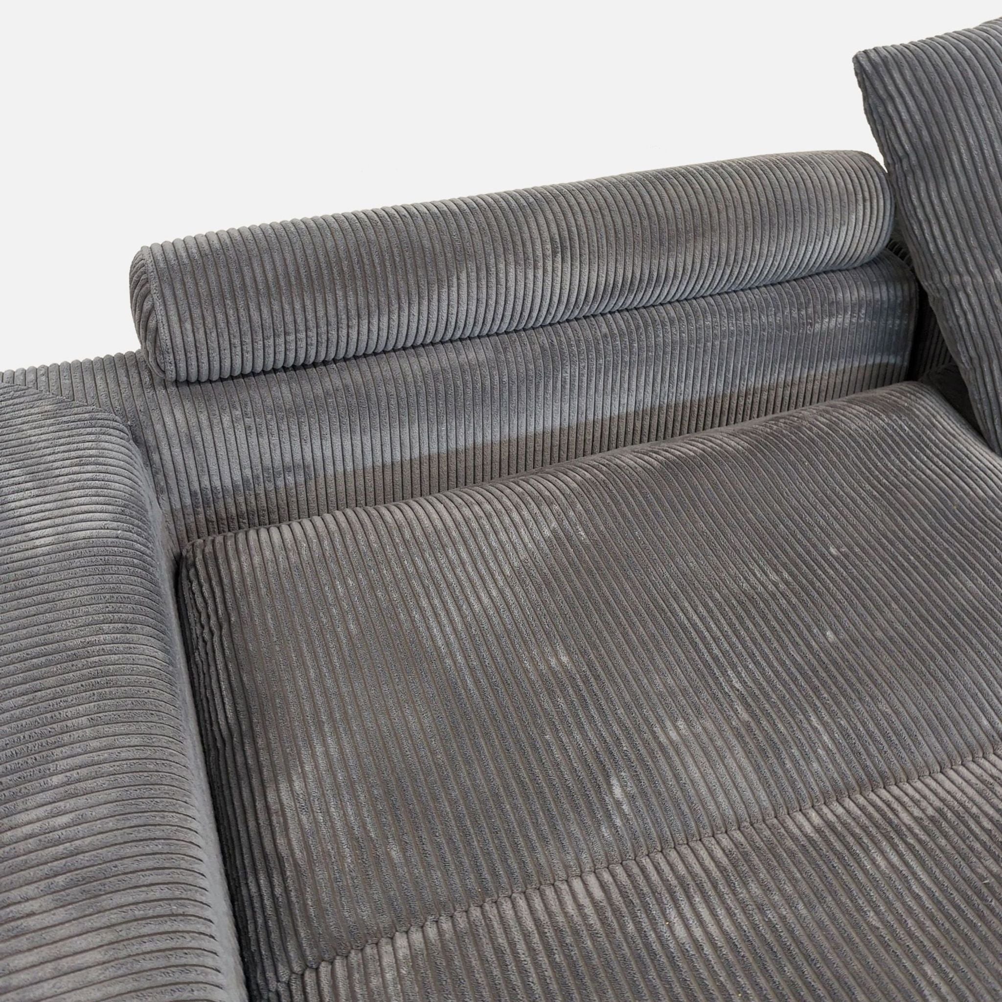 This OAH Furniture 3-seat sectional sofa features soft gray chenille fabric and a spacious, modern design. The wide seats, plush cushions, and deep chaise lounges provide excellent comfort for your living room. Stylish and practical, it seats three people easily and fits well in any contemporary space.