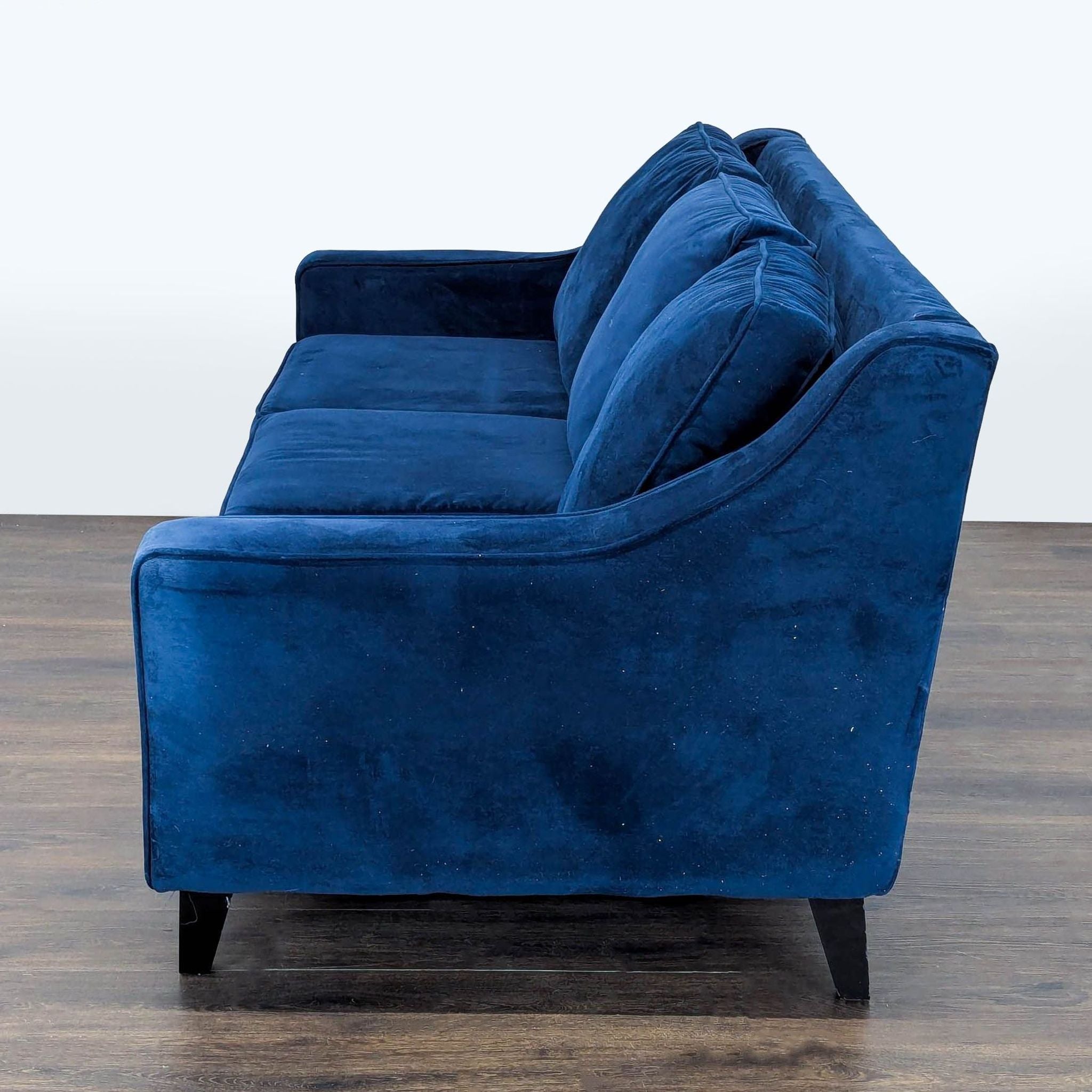 This 3-seat sofa features a rich blue velvet fabric with plush, comfortable cushions and sturdy legs. Its modern look fits easily into any living room or office. The wide seating area offers plenty of space to relax, making it perfect for families or guests. Easy to maintain and stylish, this sofa is both functional and inviting.