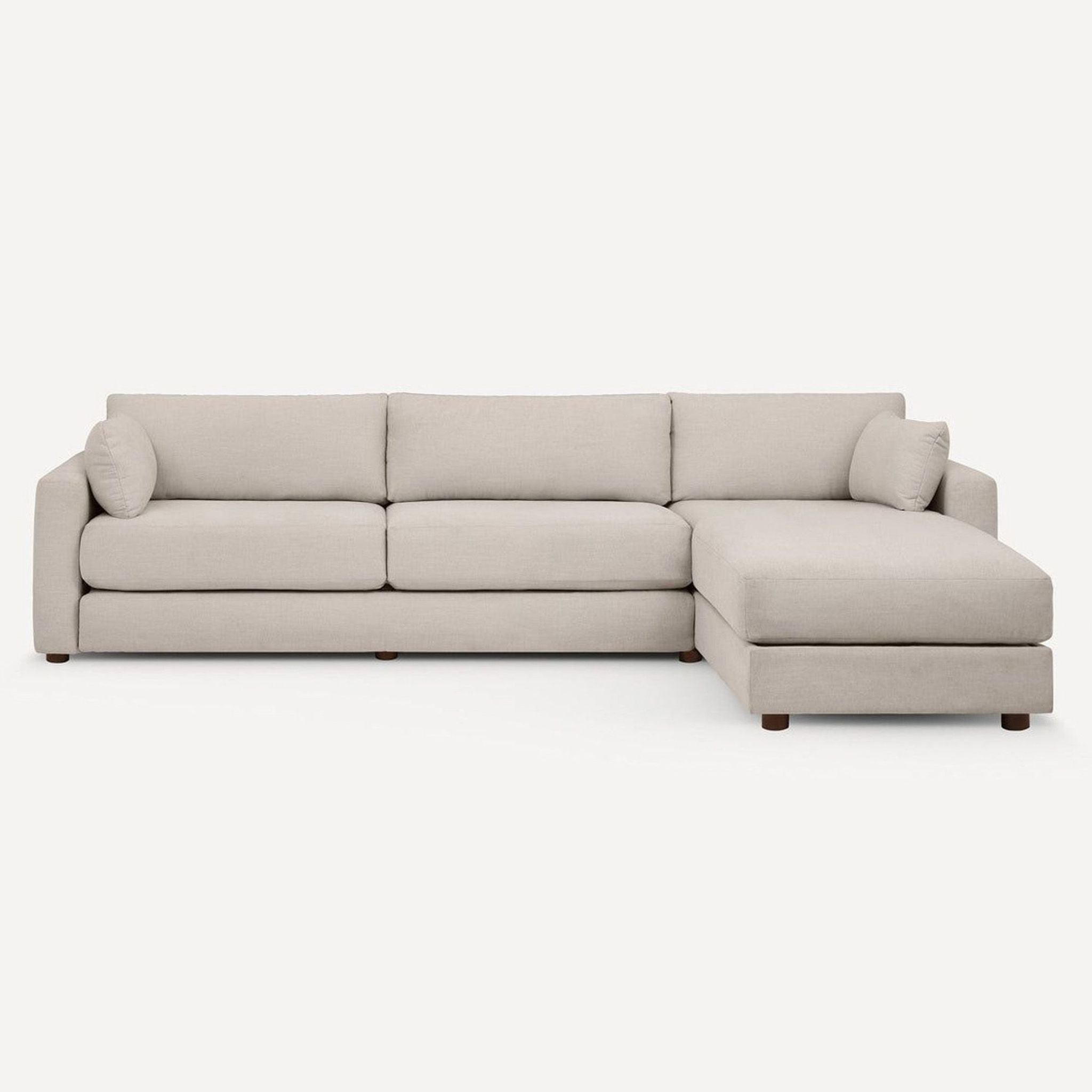 This Burrow sleeper sofa offers a modern, versatile design with a right-facing chaise. It features soft, durable fabric in a neutral light beige color that fits any decor. The sofa easily converts into a spacious bed for guests, making it ideal for living rooms or guest rooms. Comfortable cushions and sturdy construction ensure both relaxation and dependable use. Perfect for anyone who wants stylish seating and an extra sleeping option.