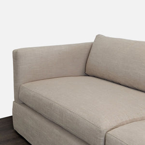 This Crate and Barrel loveseat features a modern design with clean lines and a neutral beige fabric, perfect for any living space. The loveseat includes two comfortable seat and back cushions, all of which are removable for easy cleaning. It’s an ideal choice for small apartments or as extra seating in your home.