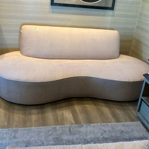 This stylish lounge sofa features a unique curved bean-shaped design, perfect for adding a modern touch to any living space. Upholstered in a soft beige fabric, it offers comfort and support with its plush seat and backrest. Ideal for relaxing or entertaining guests, this sofa is both functional and eye-catching.