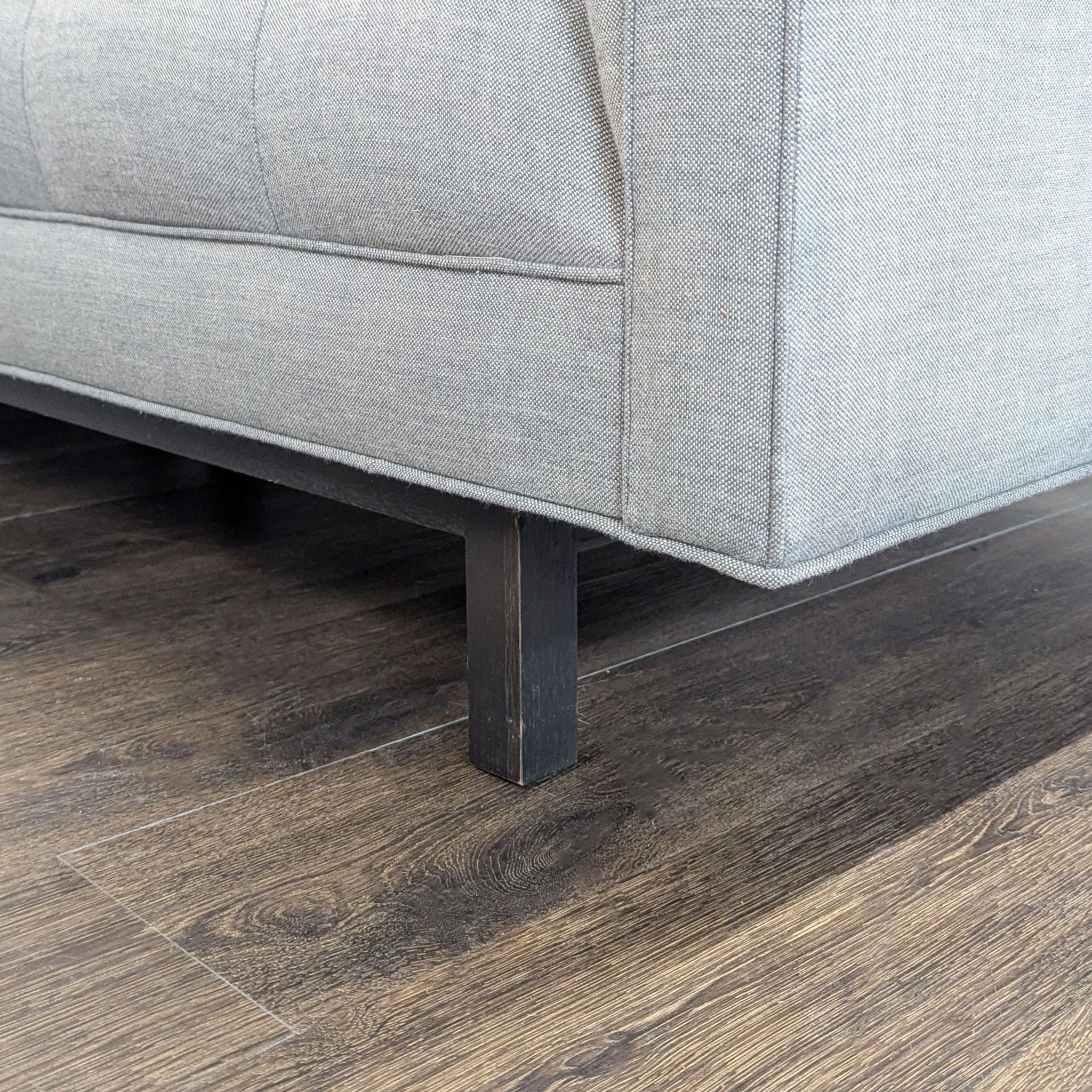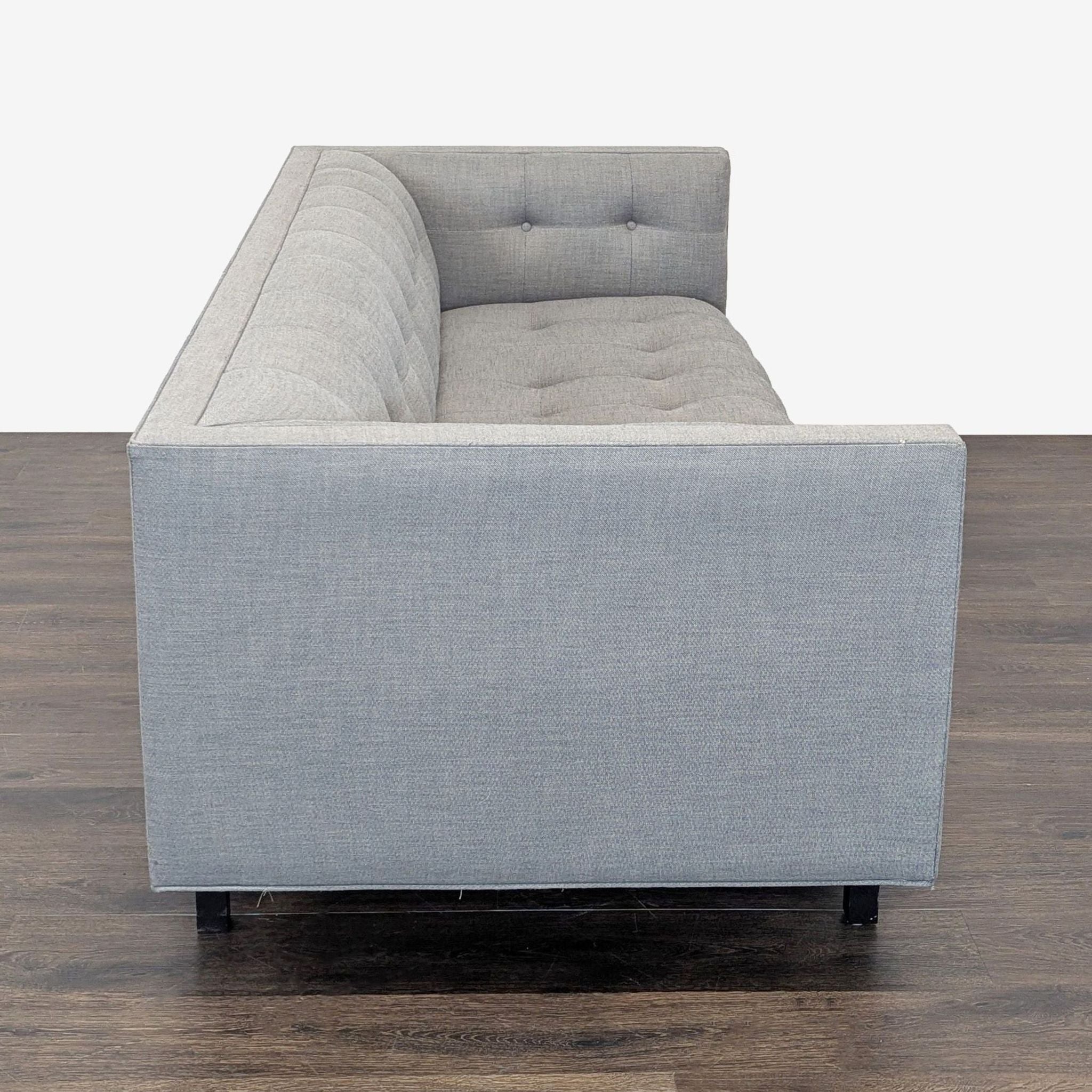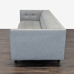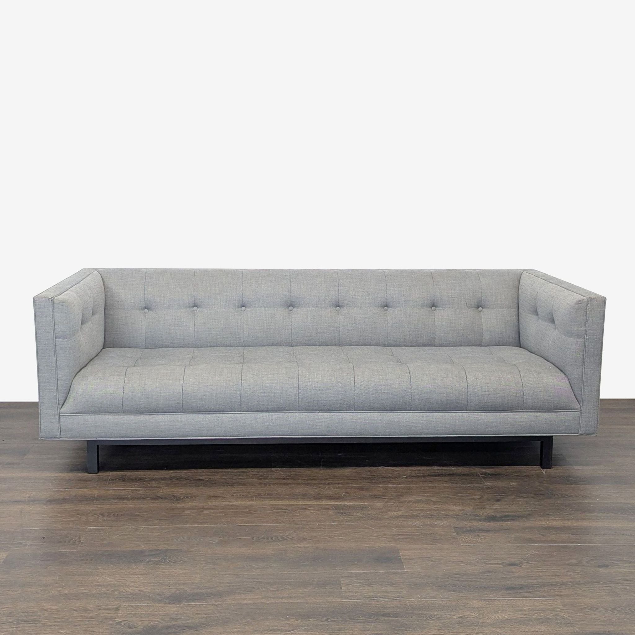 This Restoration Hardware 3-seat sofa features a sleek, modern design with a light gray fabric finish. The clean lines and button-tufted details on the back and seat add a touch of style while providing comfortable seating. Perfect for any living room or office space, this sofa offers both elegance and durability. Great condition and ready to use.