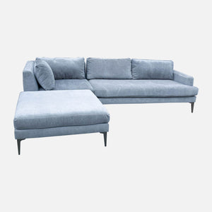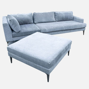 Modern Gray Two-Piece Sectional With Matching Ottoman, Narrow Arms And Black Brass Metal Feet Offers Layout Flexibility *** West Elm Andes 3 Pieces Sectional With Ottoman Fabric: Distressed Velvet, Mineral Grey.