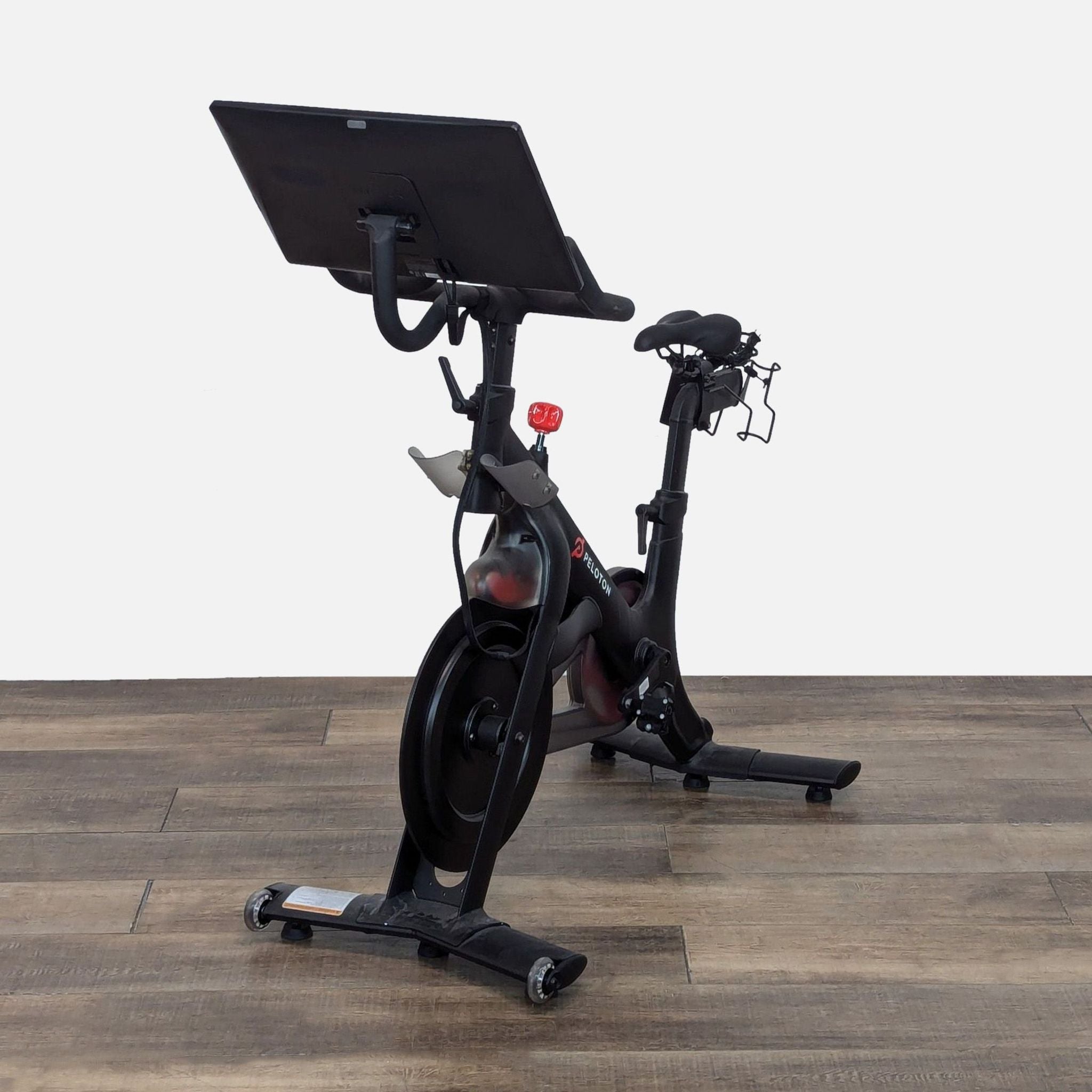 The Peloton PLTN-RB1VQ is a third-generation indoor stationary bike designed to deliver an immersive home fitness experience. It features a 21.5-inch Full HD touchscreen that streams live and on-demand classes, providing real-time metrics such as heart rate, cadence, resistance, and output . The bike's compact footprint of 4' x 2' makes it suitable for various home spaces . Equipped with a magnetic resistance system controlled by a manual knob, it ensures a smooth and quiet ride . Additional features include Bluetooth and Wi-Fi connectivity, adjustable seat and handlebars for personalized comfort, and compatibility with heart rate monitors to enhance workout tracking .