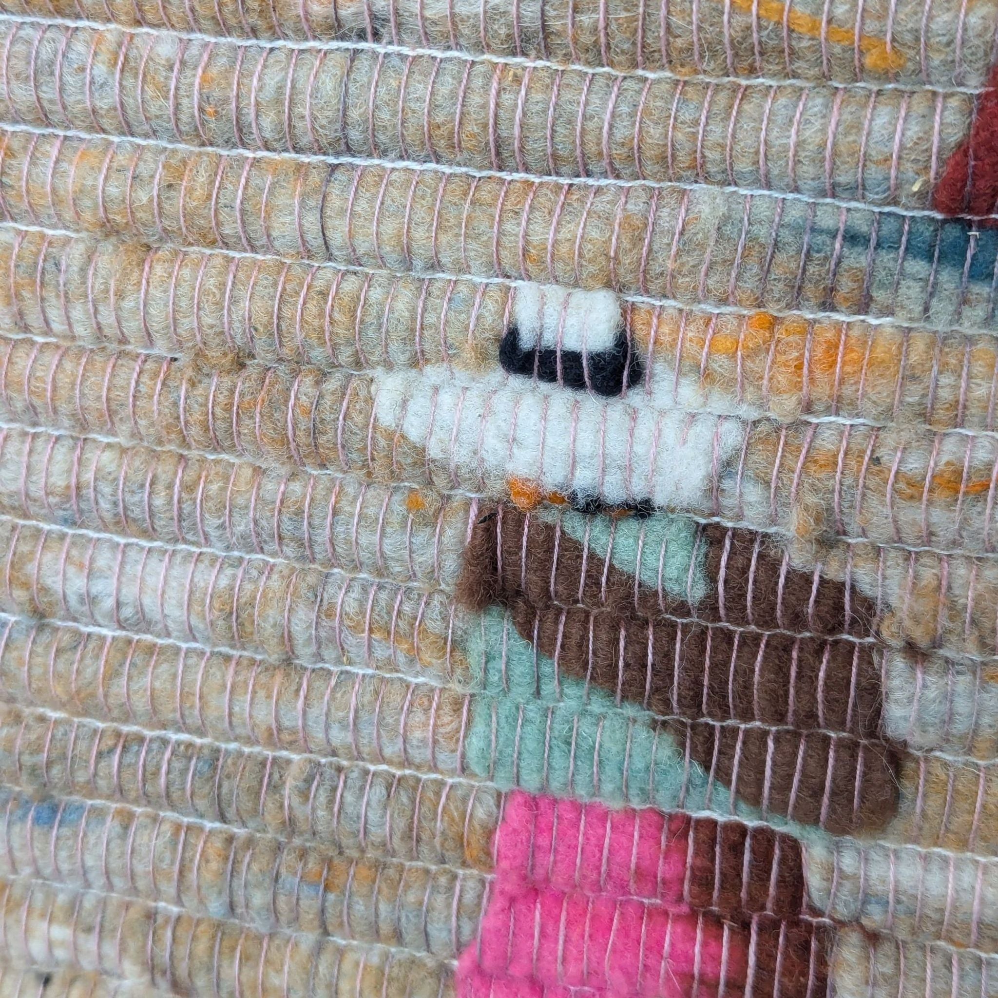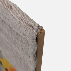 Peruvian wool handwoven wall tapestry mounted on a frame.