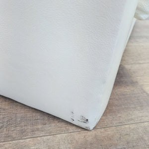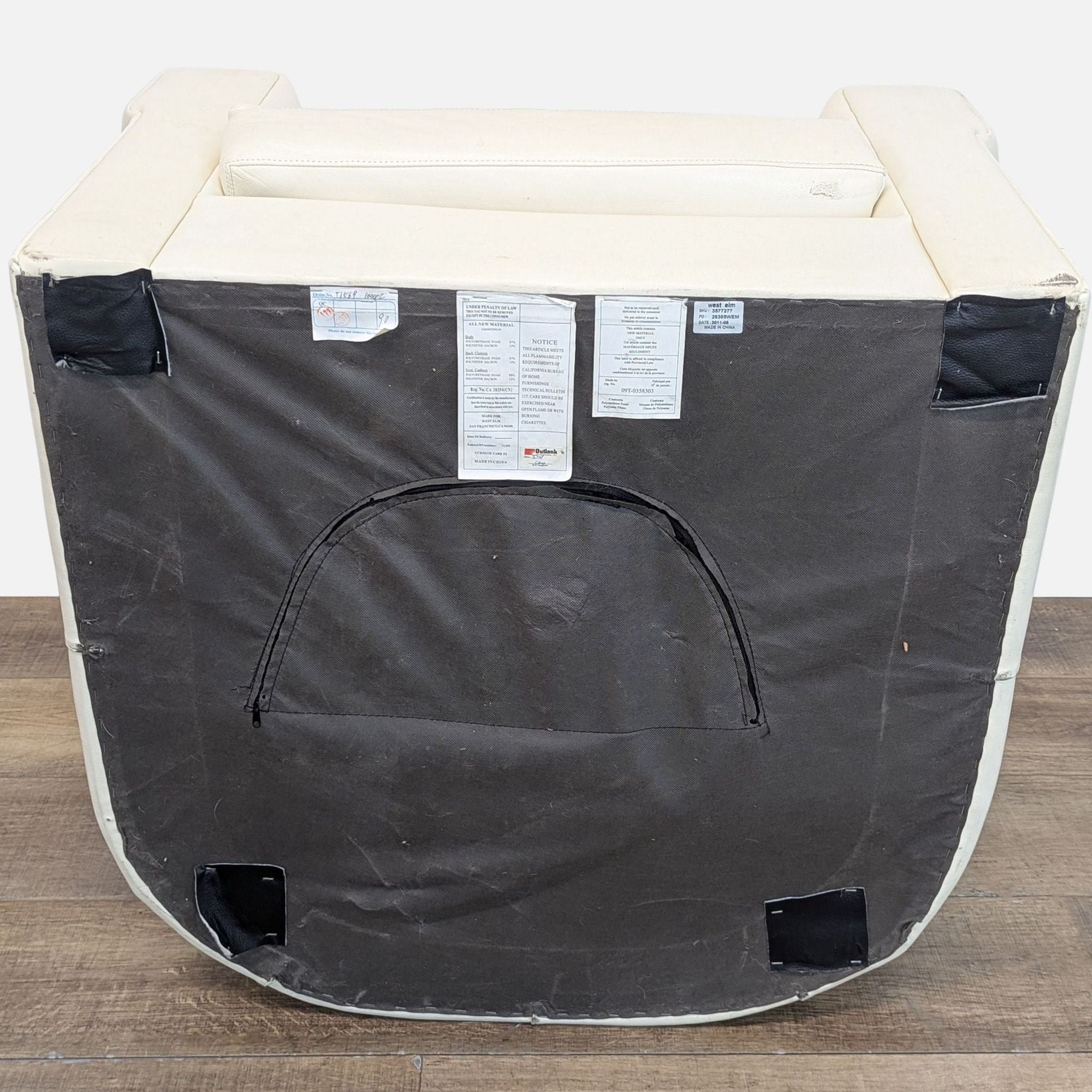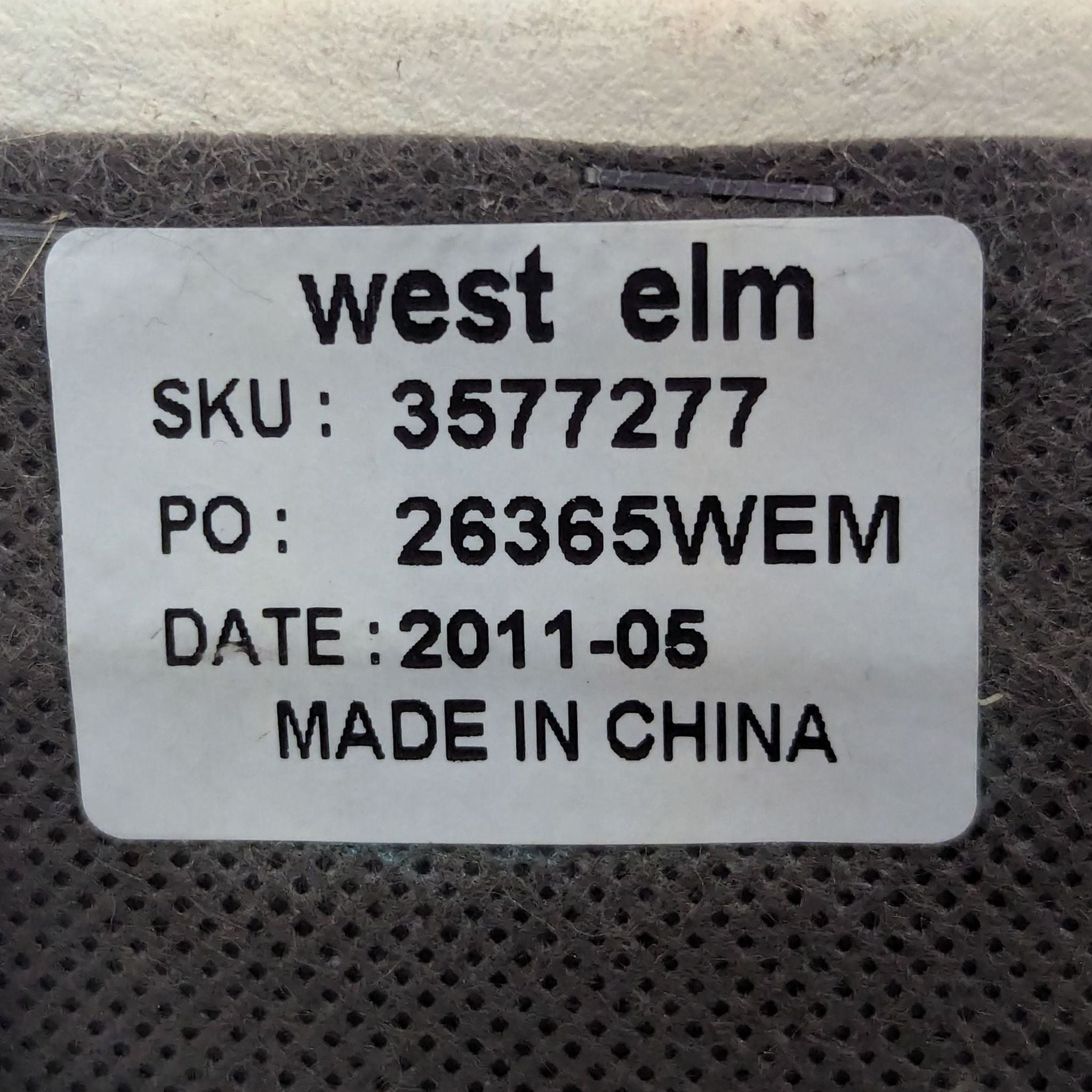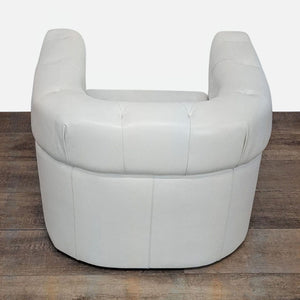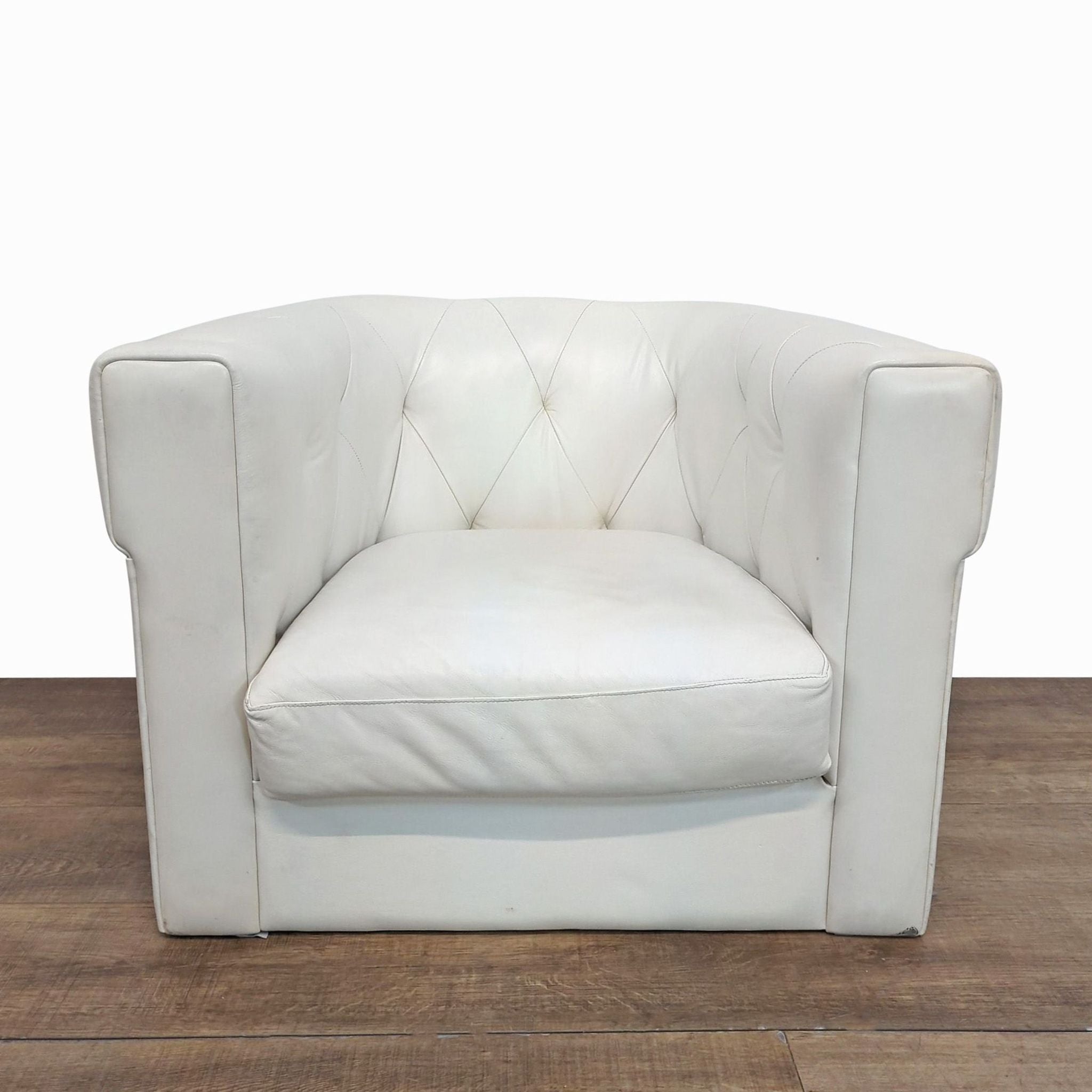 This chair by West Elm features a curved back with squared arms and leather upholstery with a diamond tufted back.