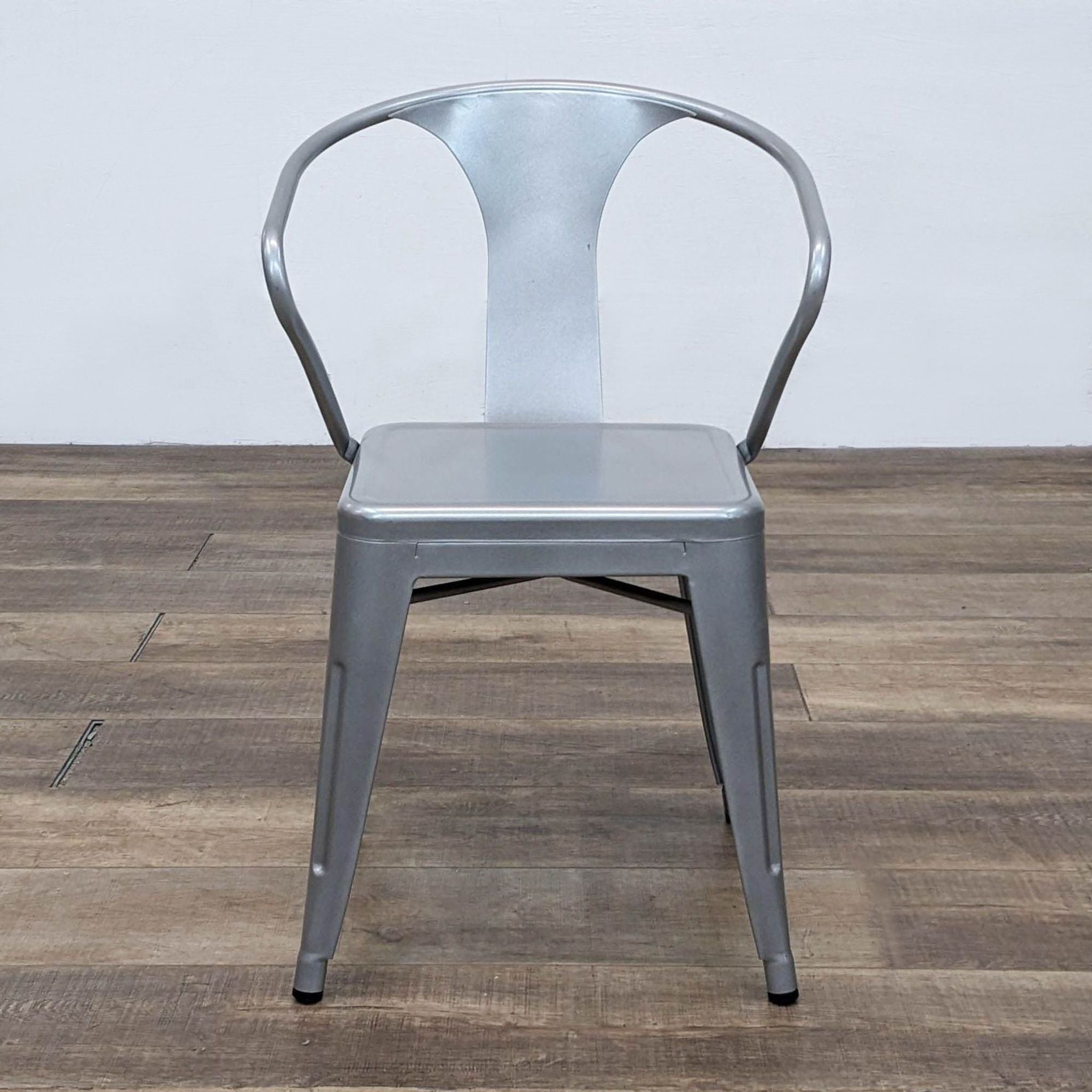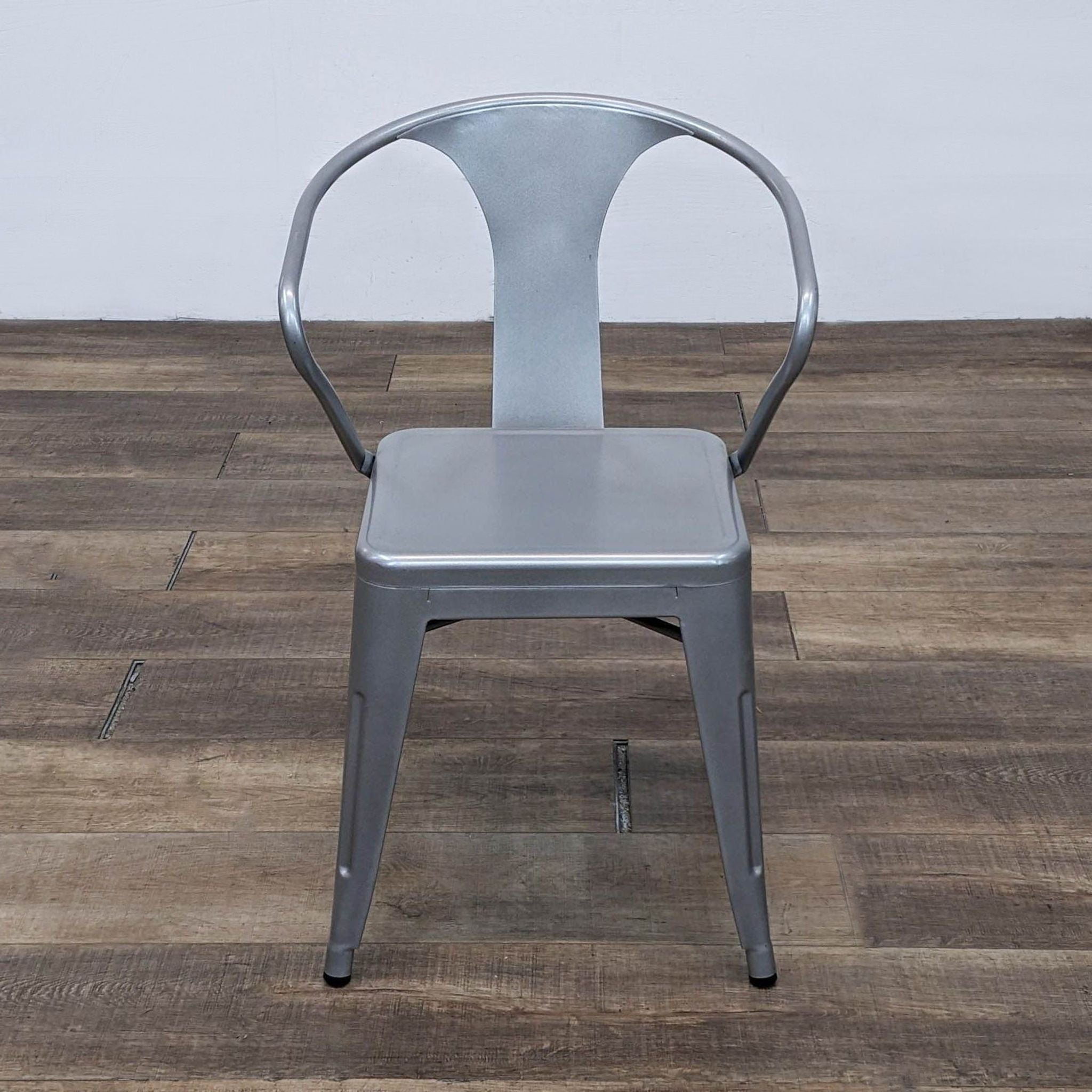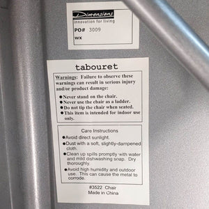 The Dimensions Tabouret chair has Industrial Modern style and is constructed of metal with a gunmetal powder coated finish.