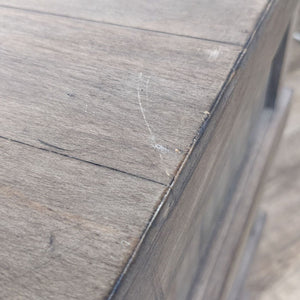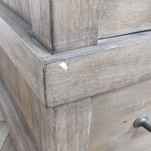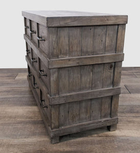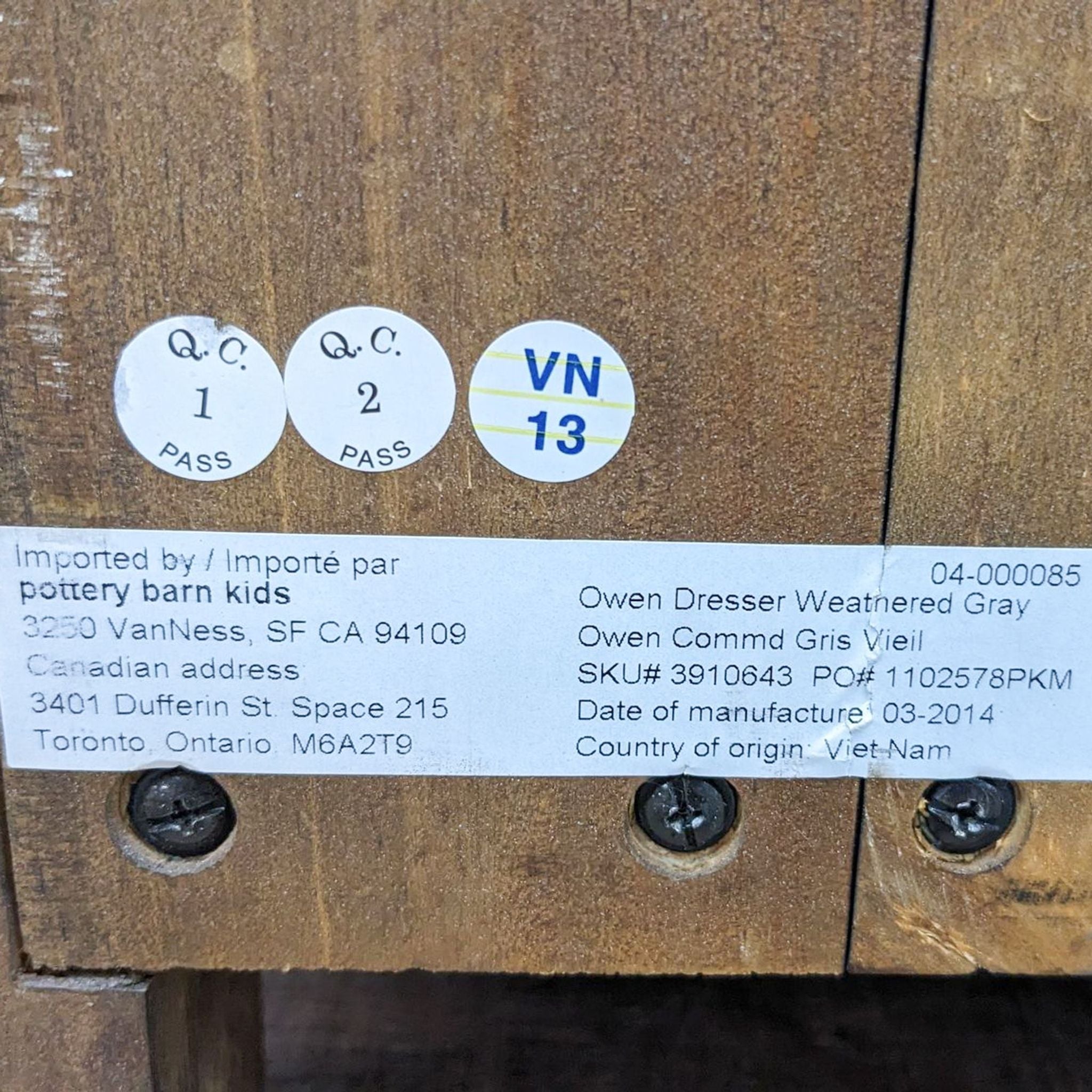 The Owen dresser by Pottery Barn Kids boasts rustic industrial style with a weathered finish and 5 drawers with metal pulls.