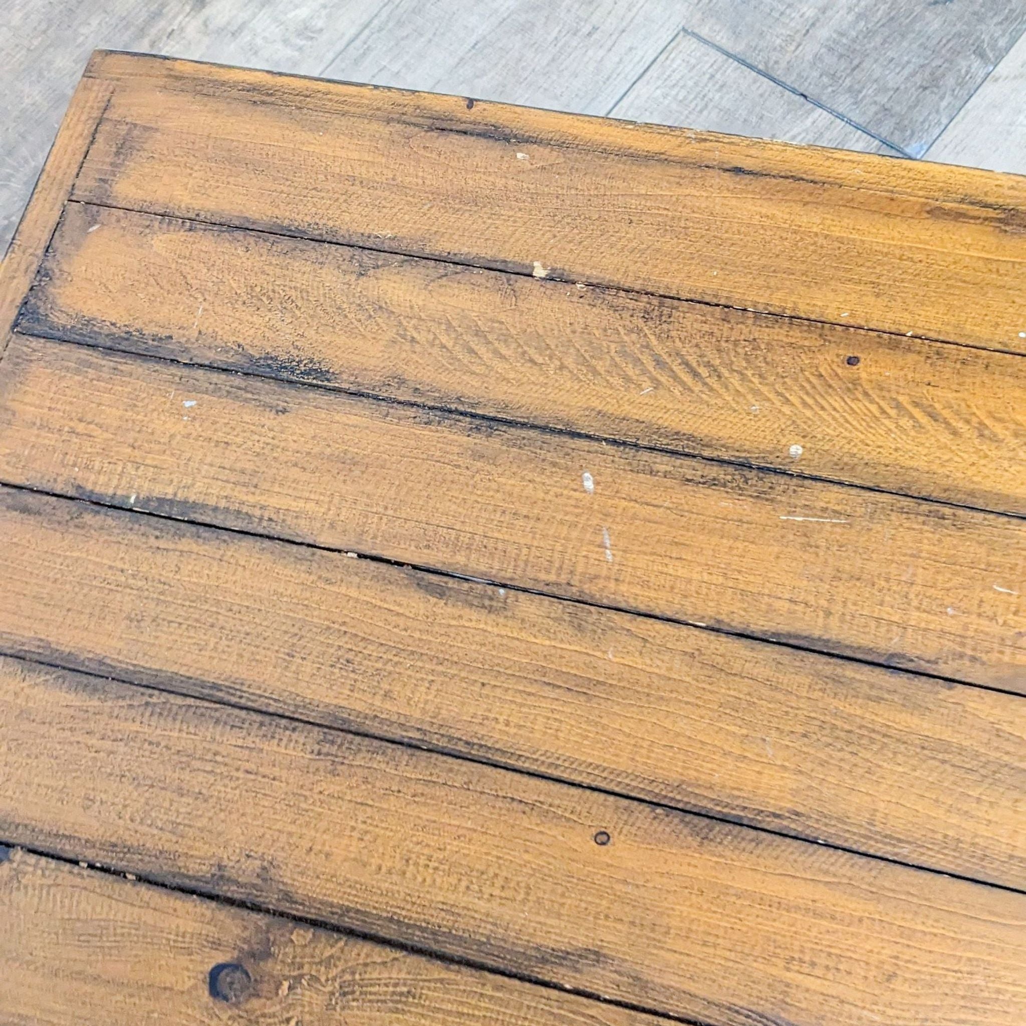 Rustic industrial solid wood and steel coffee table with open shelf in pine brown finish