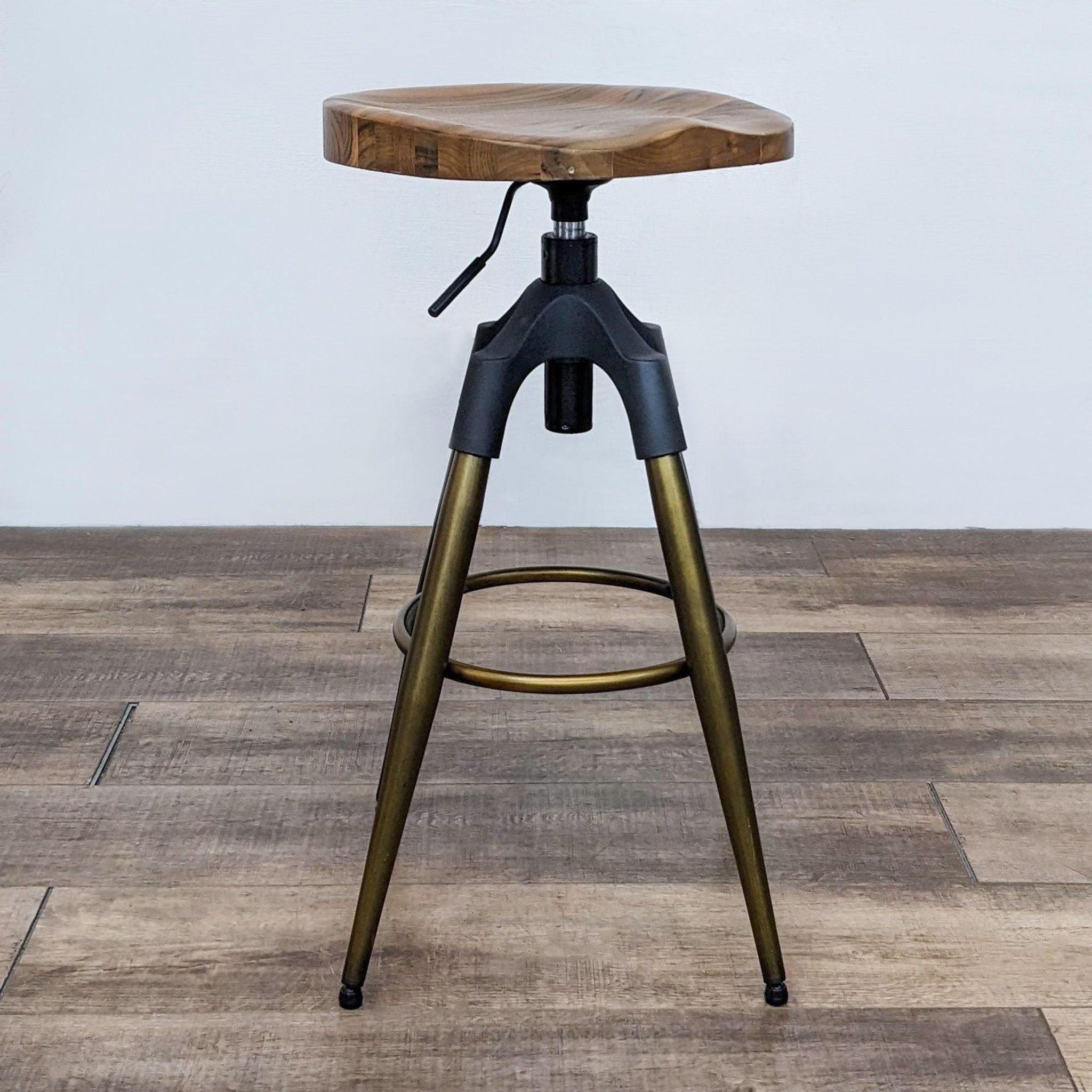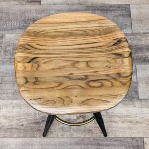 Thick Solid Wood Round Seat Stool With Natural Wood Graining, Black With Gold Frame And Adjustable Height