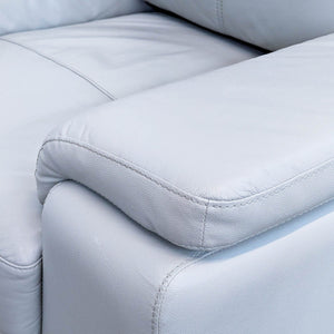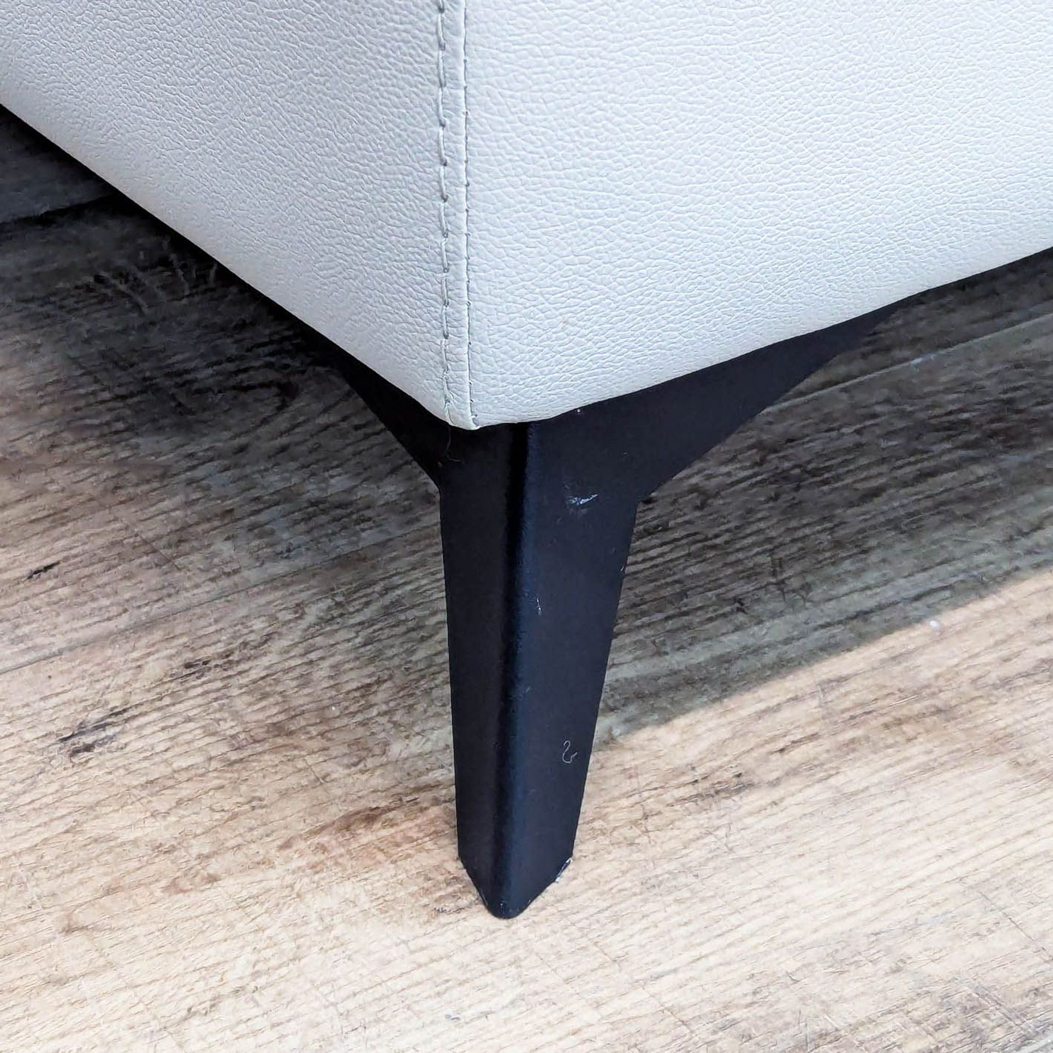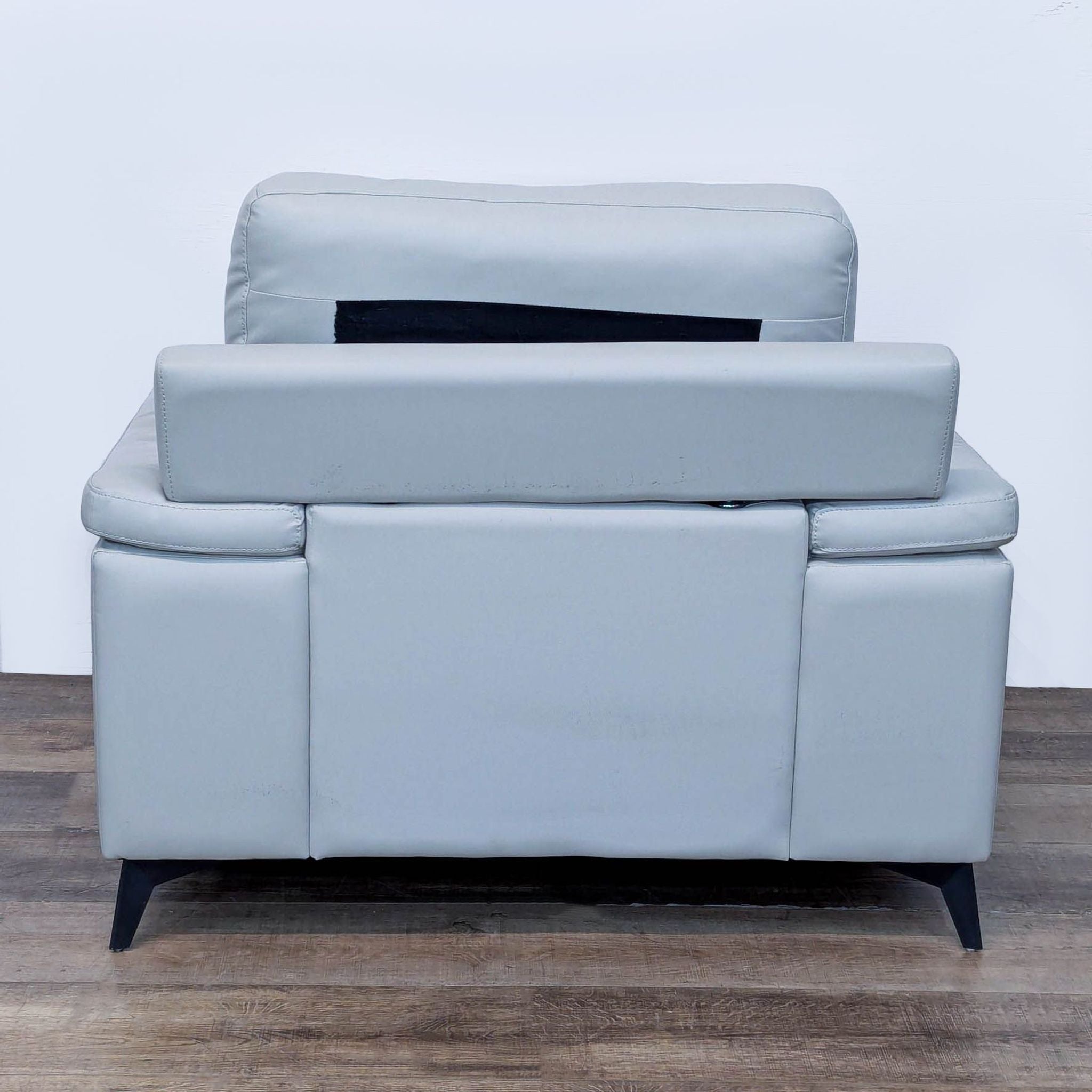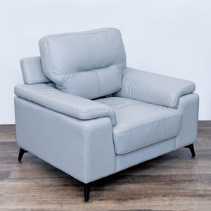 The silver top grain leather cover, with faux leather, enhances the sleek profile of the Mischa chair with contoured pillow-top arms and black metal legs.