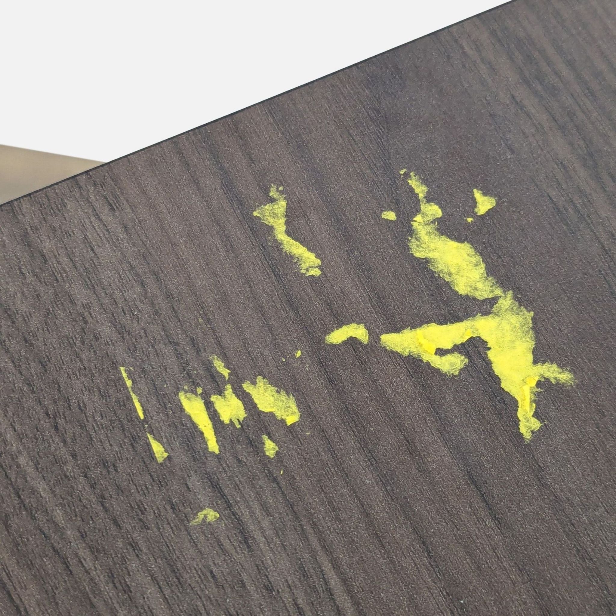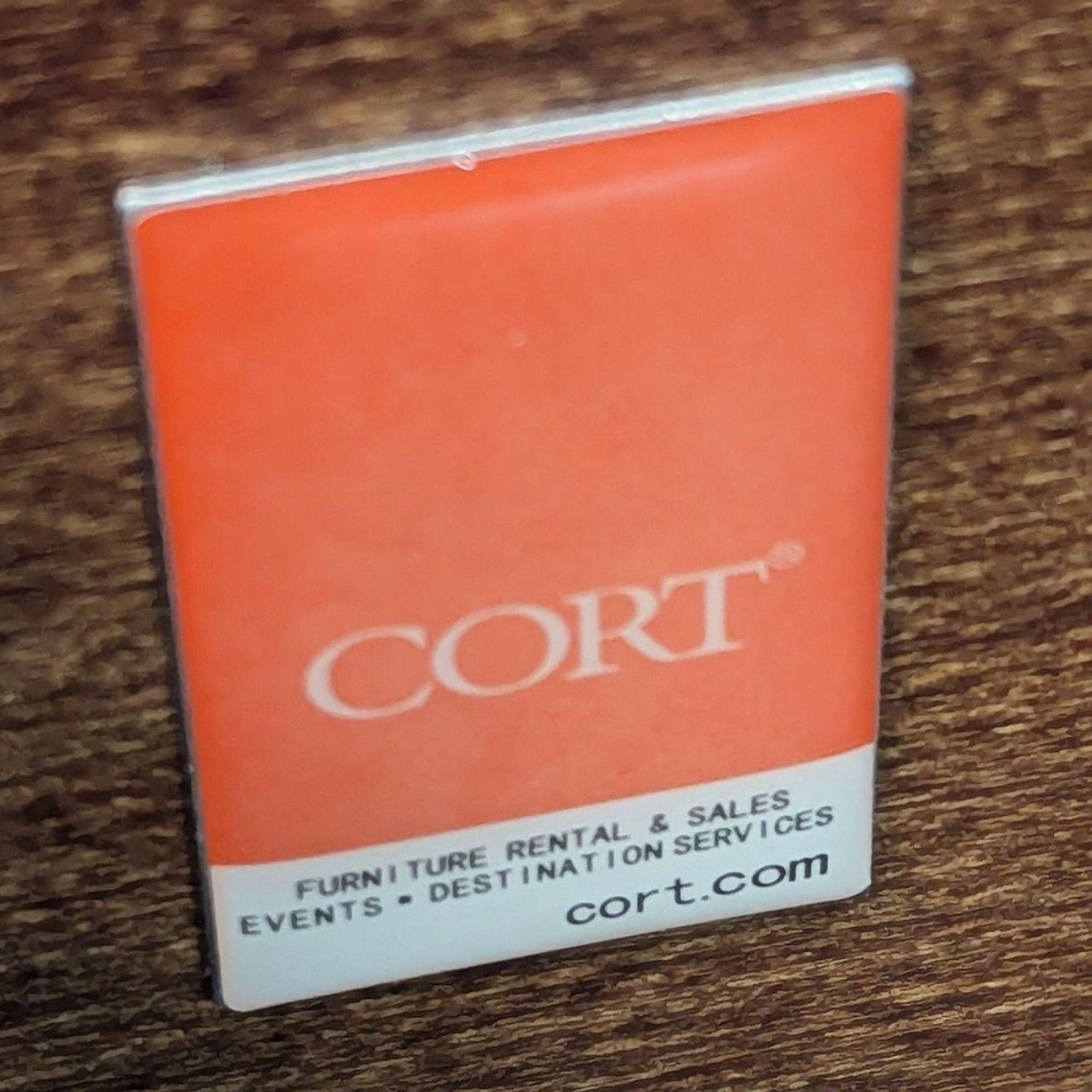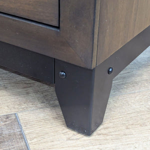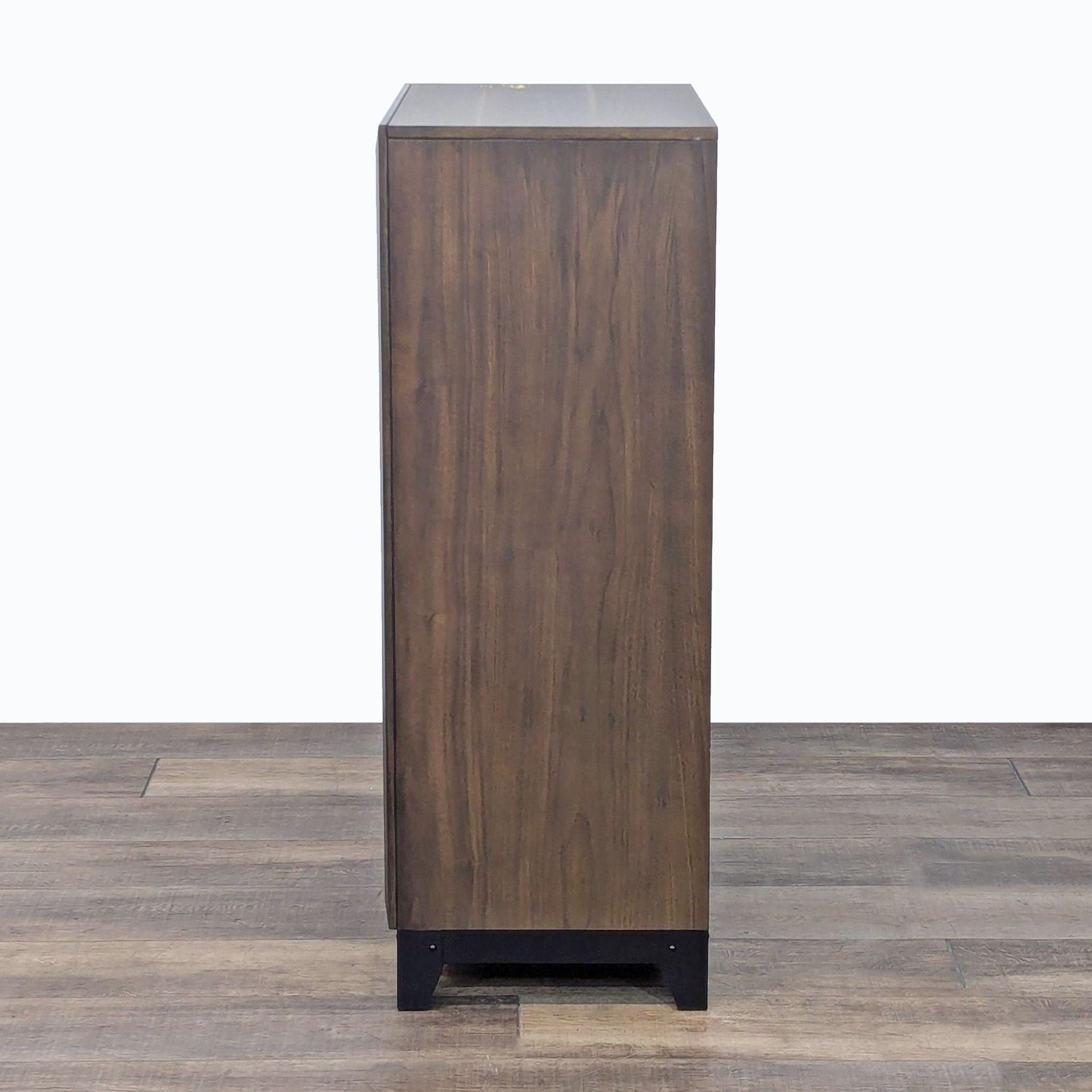 This dresser by Cory features two toned wood with five drawers on metal glides and metal cup pulls.