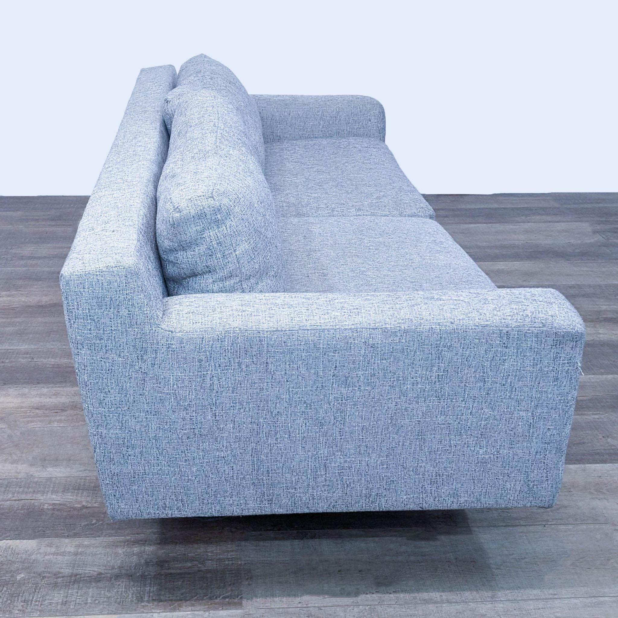 Block Arm Gray Sofa On Light Finish Solid Wood Feet