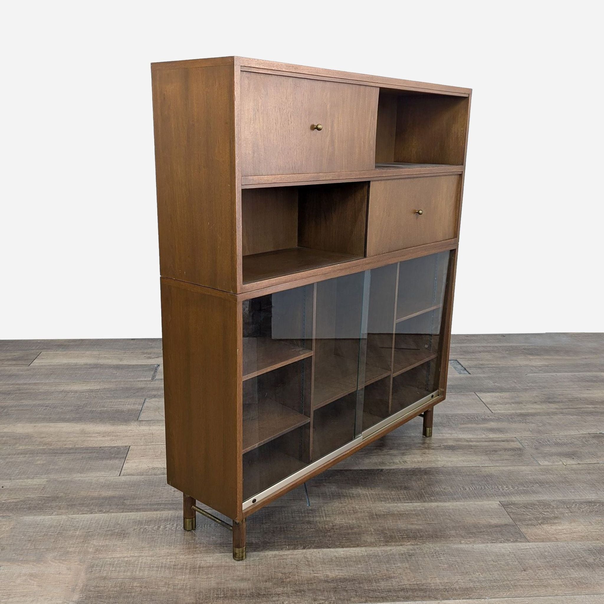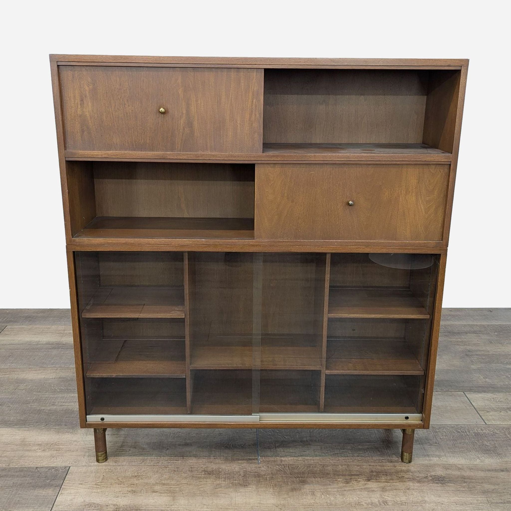 Sliding wood doors on the top and sliding glass doors on the bottom