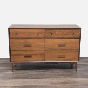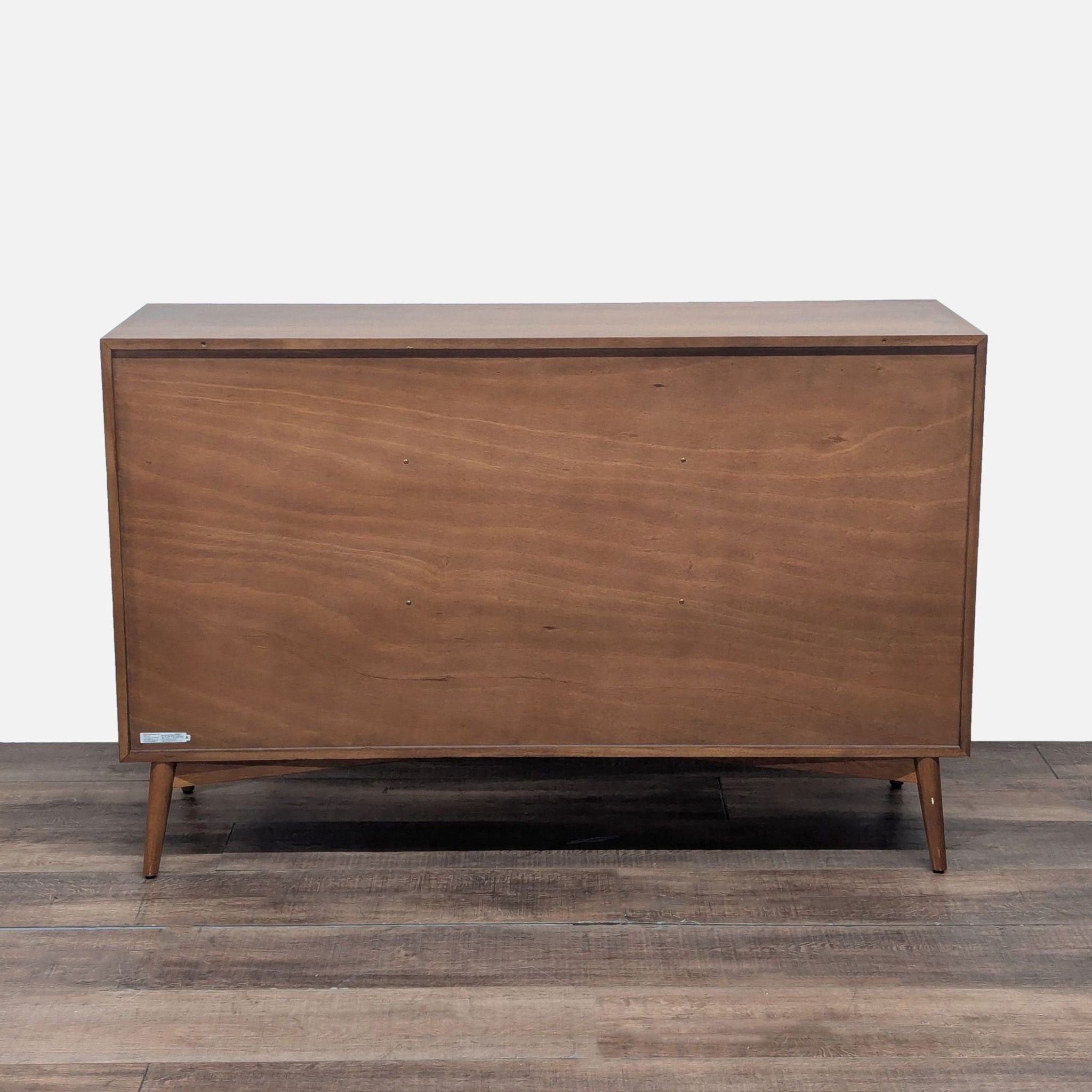 Roomy, mid-century inspired with tapered legs, an angular base and beveled front edges.