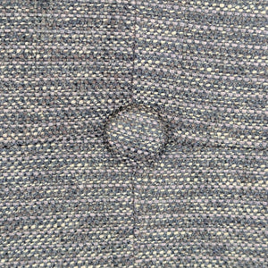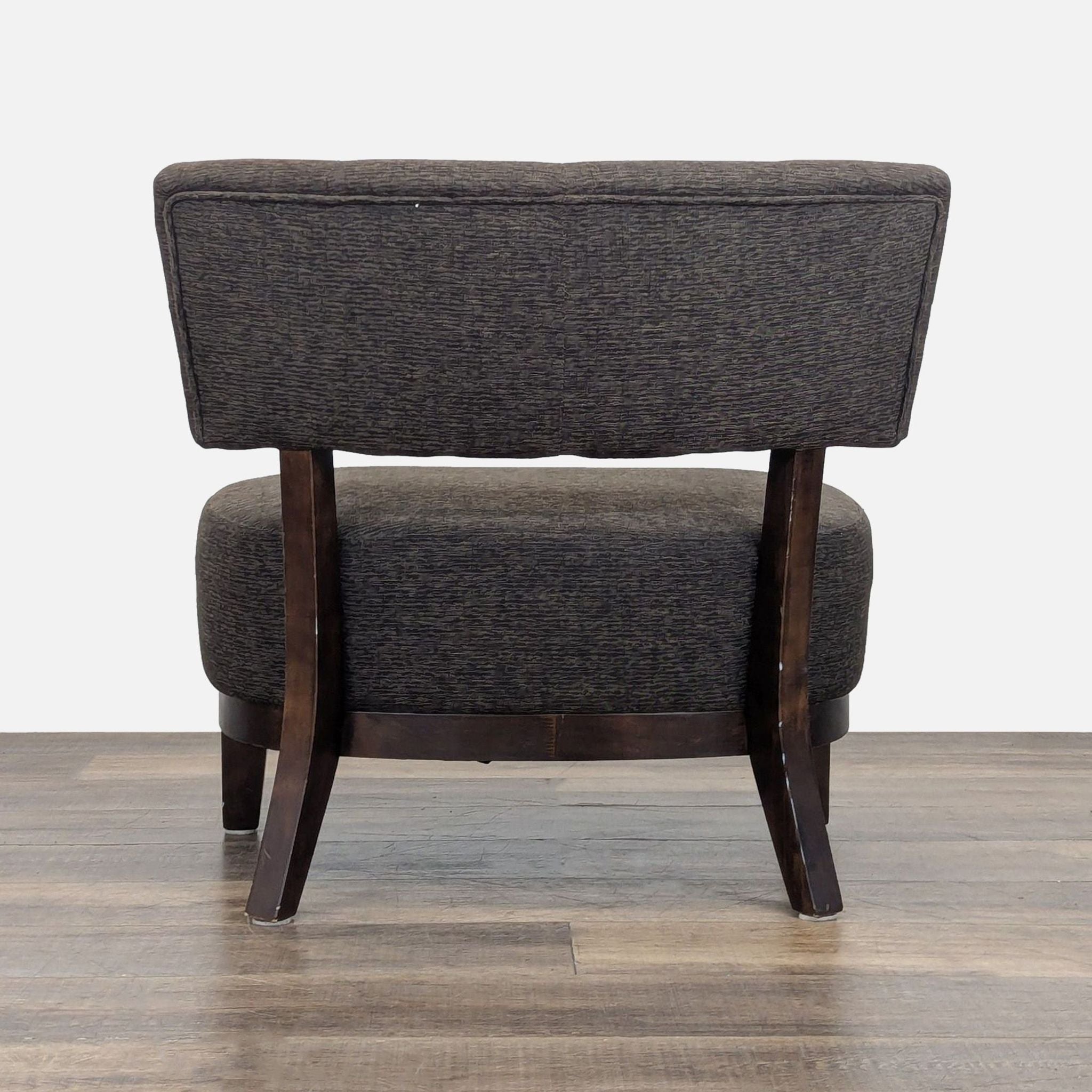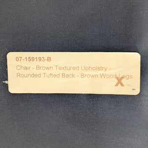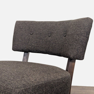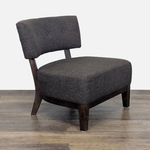 Slipper style chair with wood frame and legs with upholstered seat and back with button tufting.