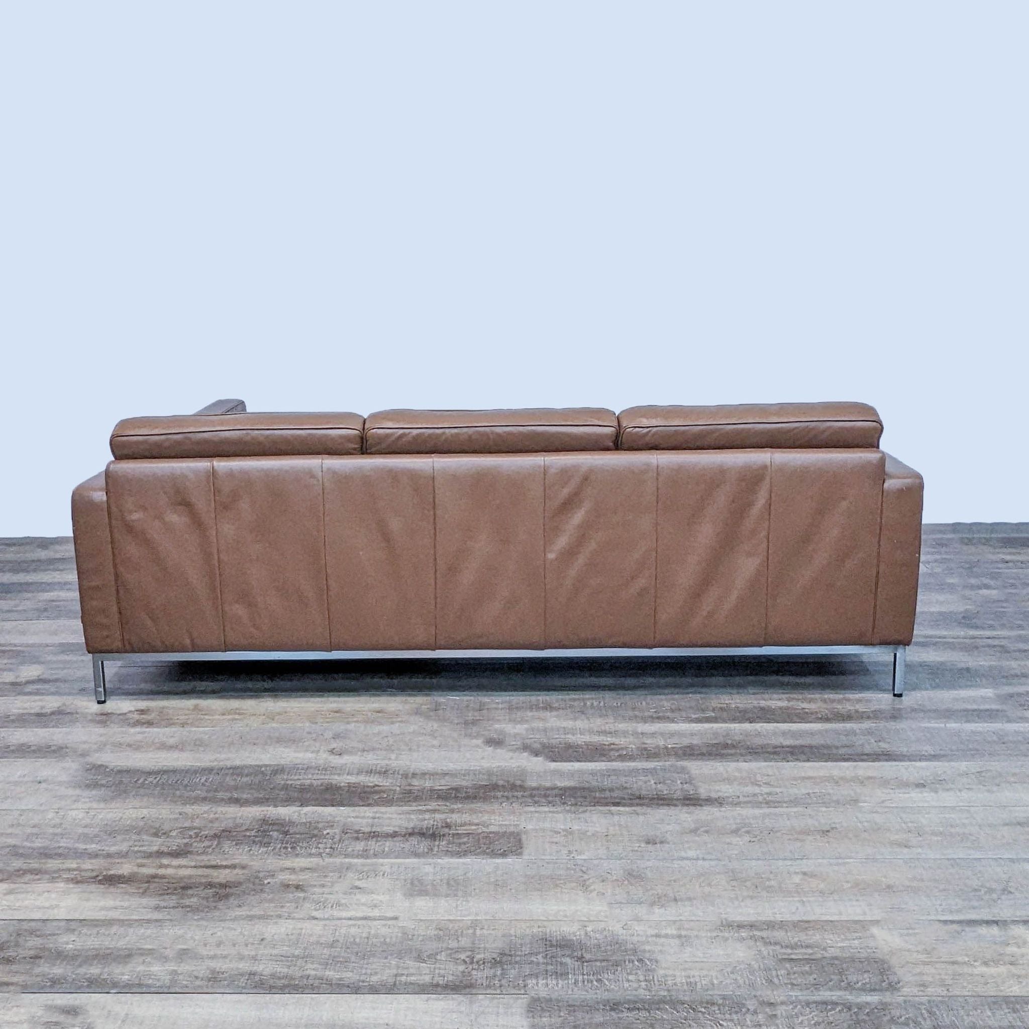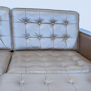 Tufted Leather Sectional With Reversible Chaise And Chrome Metal Feet