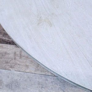 The Beaumont dining table by Zuo Modern boasts a coastal feel and is constructed of solid acacia wood with a smooth round top and flared legs in a bleached, sun dried finish.