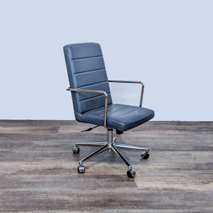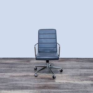 The Finesse Mid Back Office Chair by Modway is designed with a delicately ribbed vinyl cushioned mid back and waterfall seat, equipped with chrome steel armrests, a polished aluminum base with five dual-wheel black nylon casters, and height adjustable pneumatic lever and tension knob to control the chair’s backward tilt.